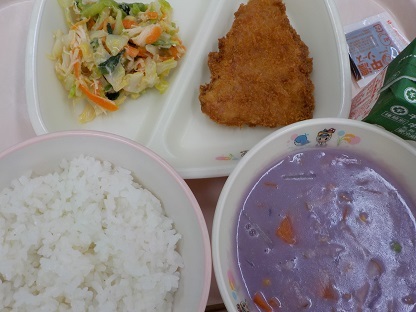 初めて給食に登場させたのは3年前。その時は、「 紫芋のパープルスープ」という可愛い名前でした。