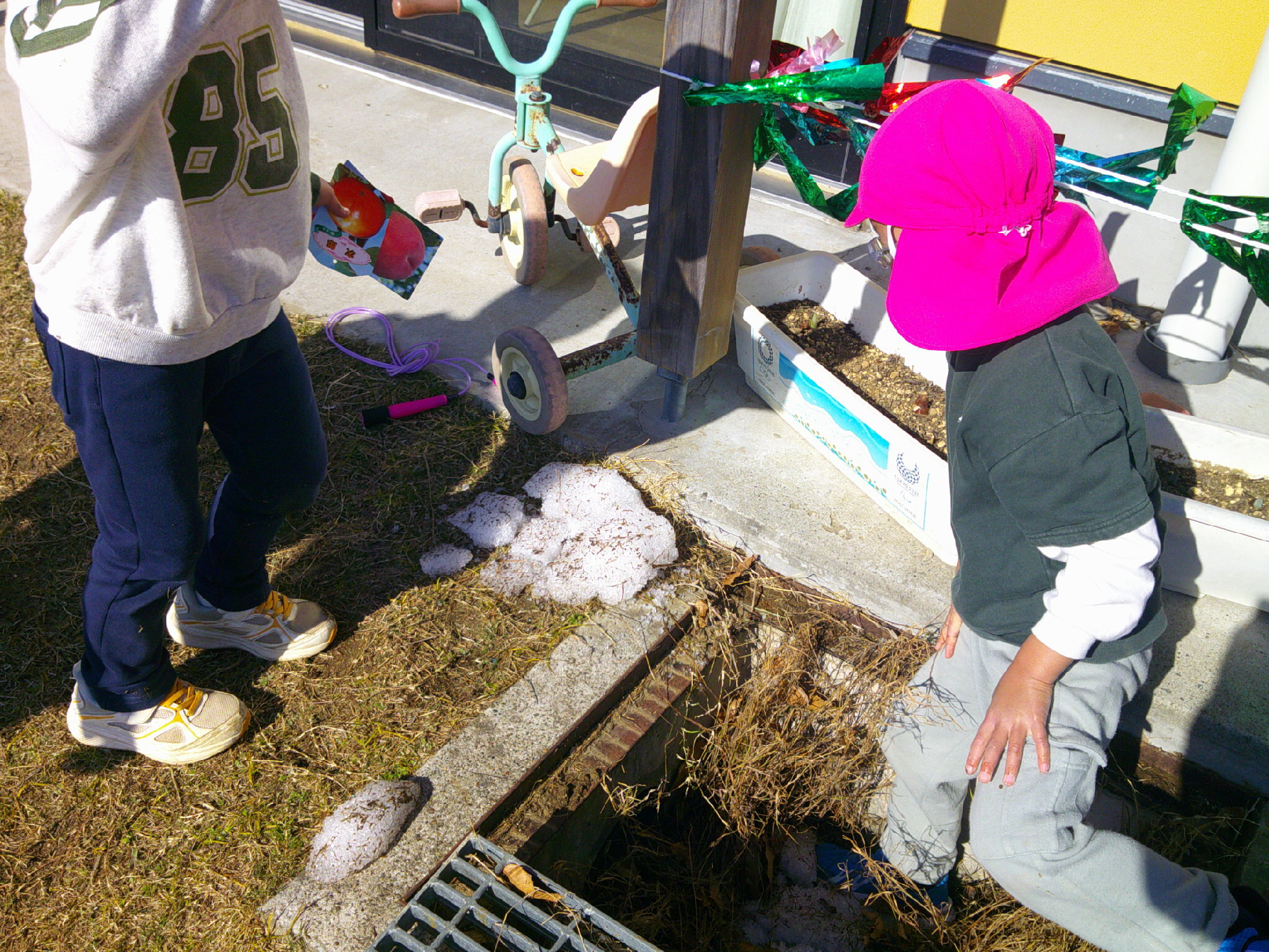 グレーチングの下に氷を発見!