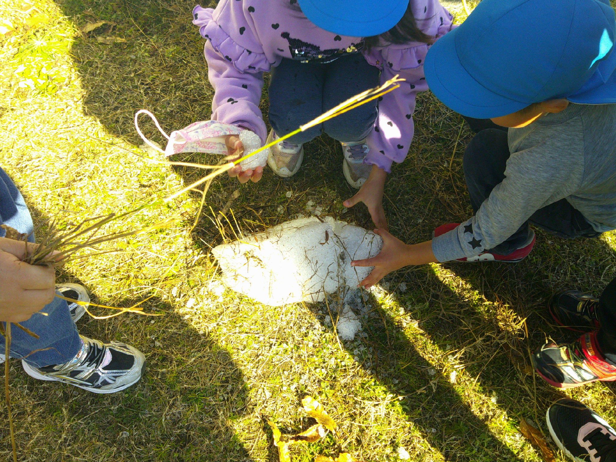 あっ!土曜日の夜に降った雹がたまって固まったんだ。
