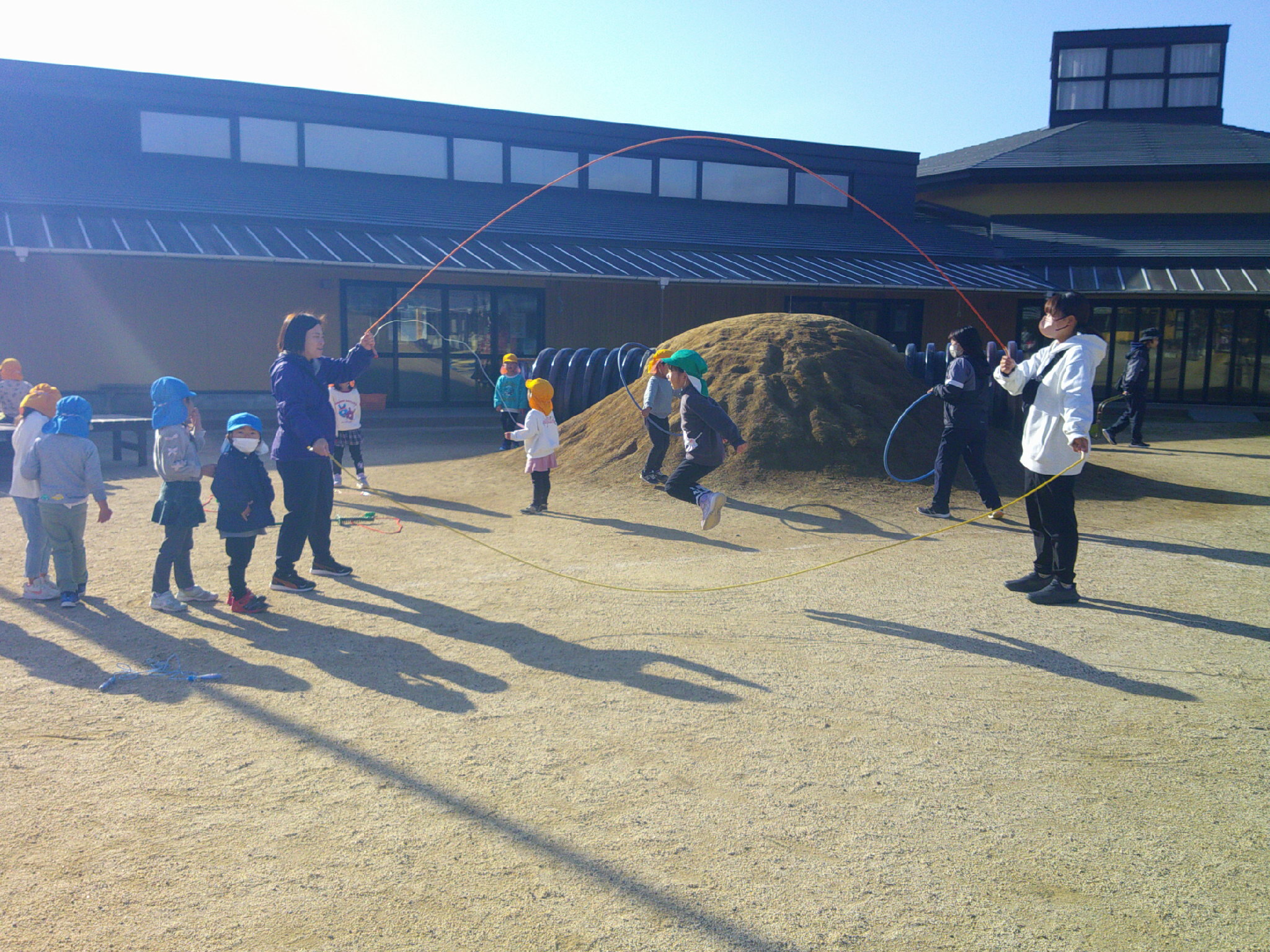 その脇では 年長さんのダブルダッチに