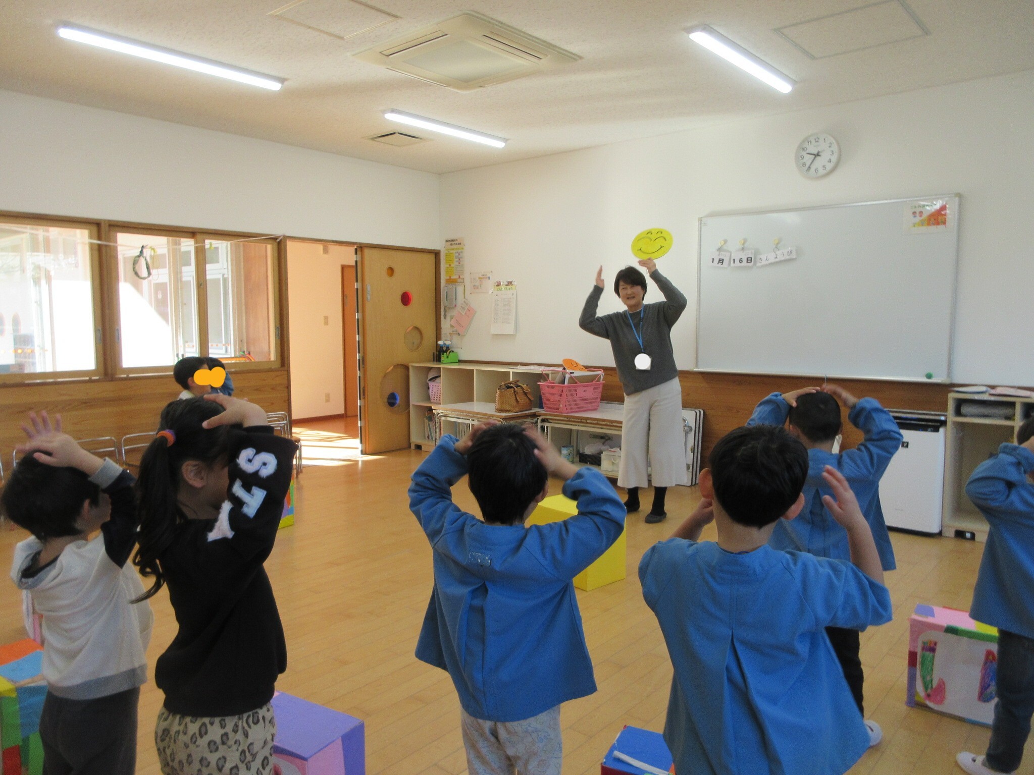 「あたま・おしり・たいそう」の言葉遊びを見てもらいたくて、
