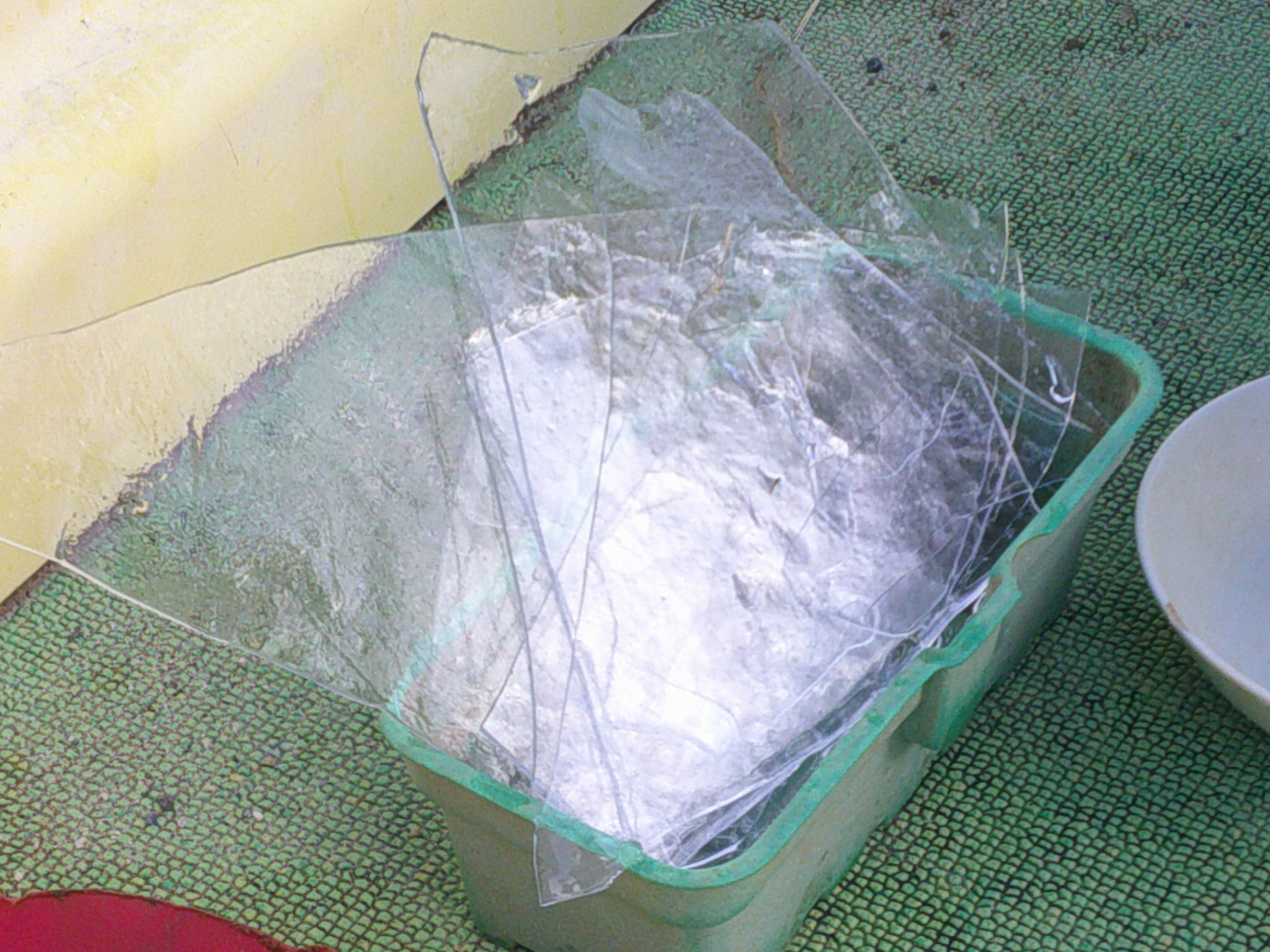 氷が張るように用意した容器や手押し車の水は