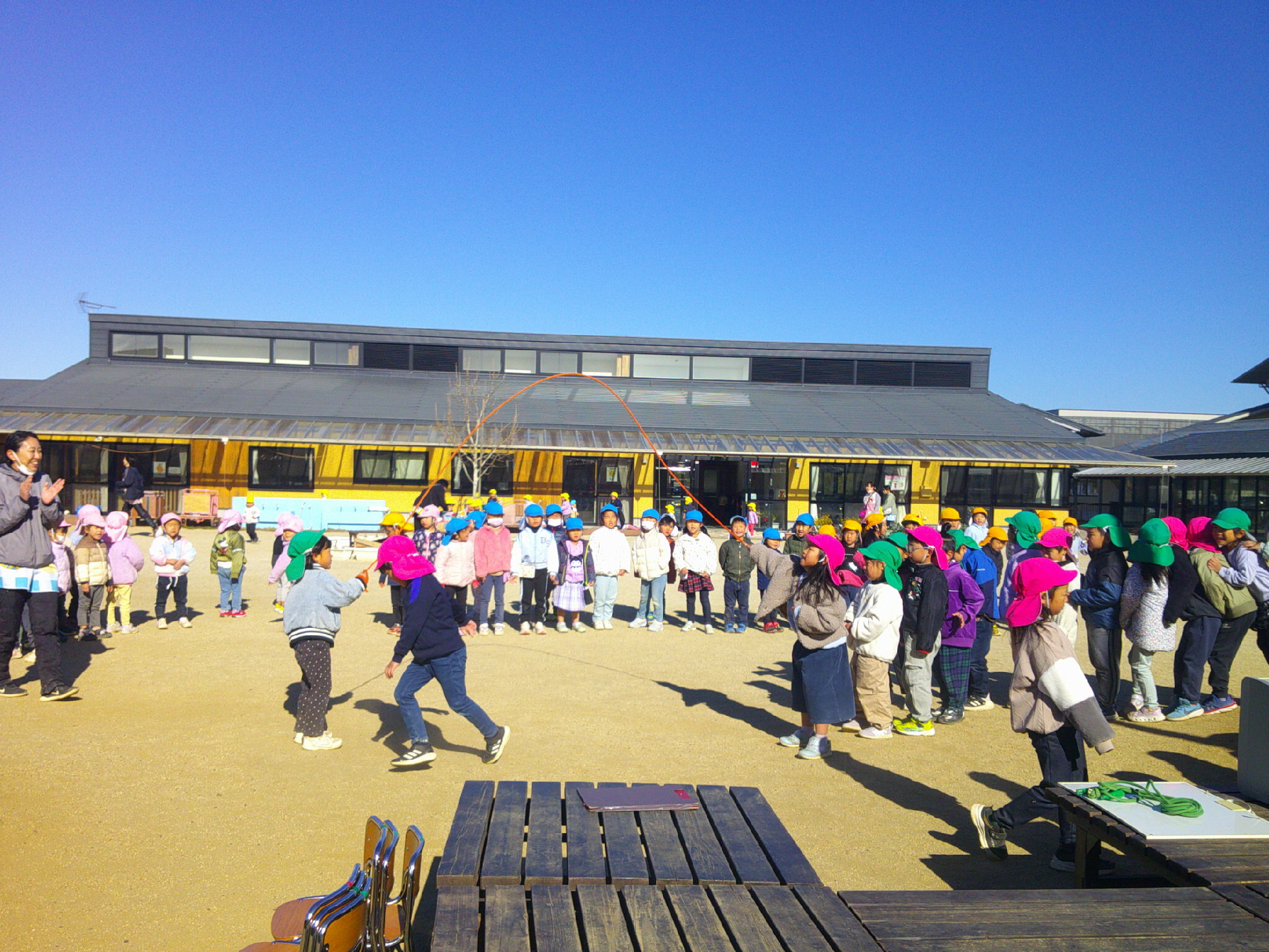 お楽しみは長縄対決です。