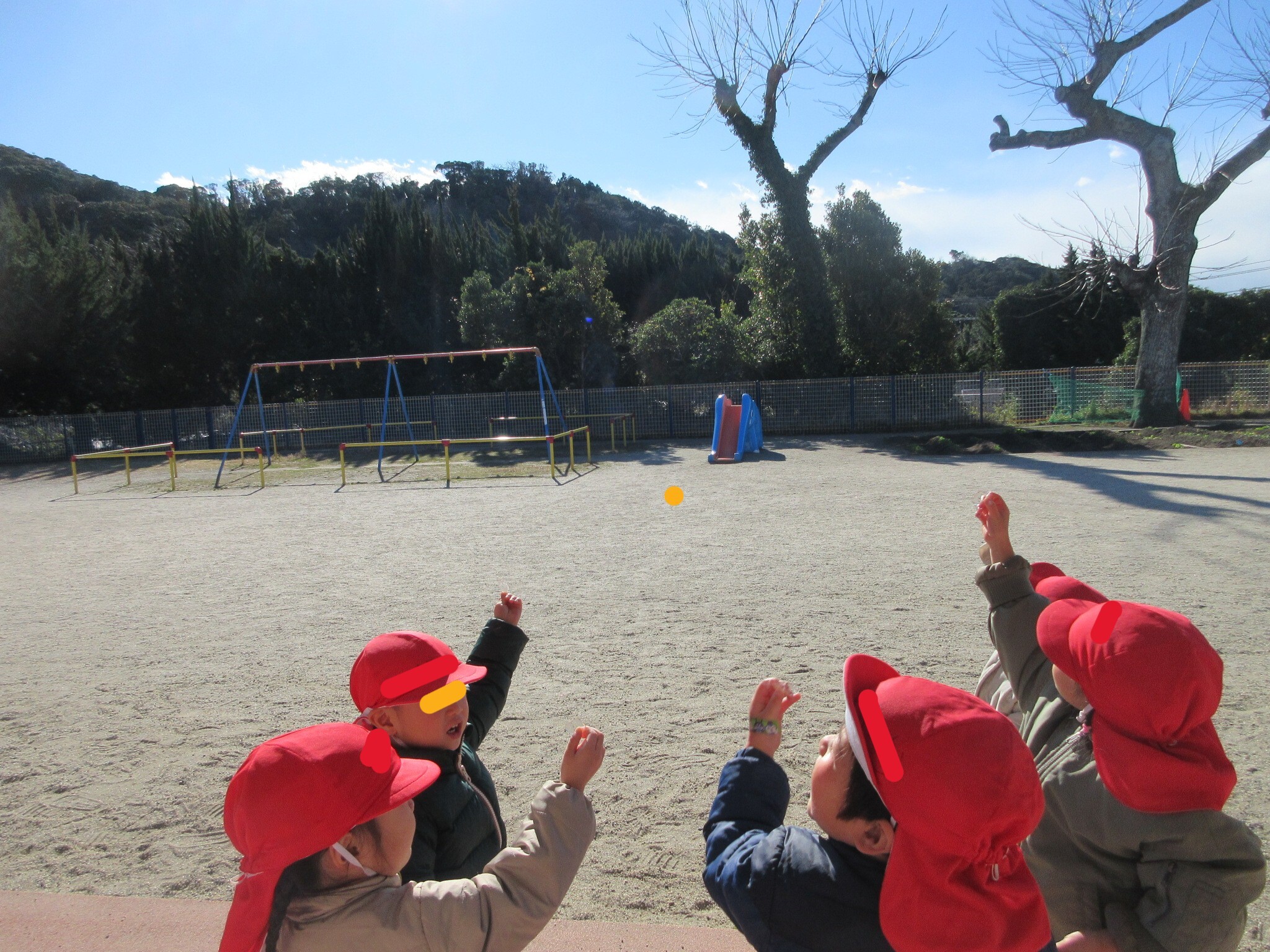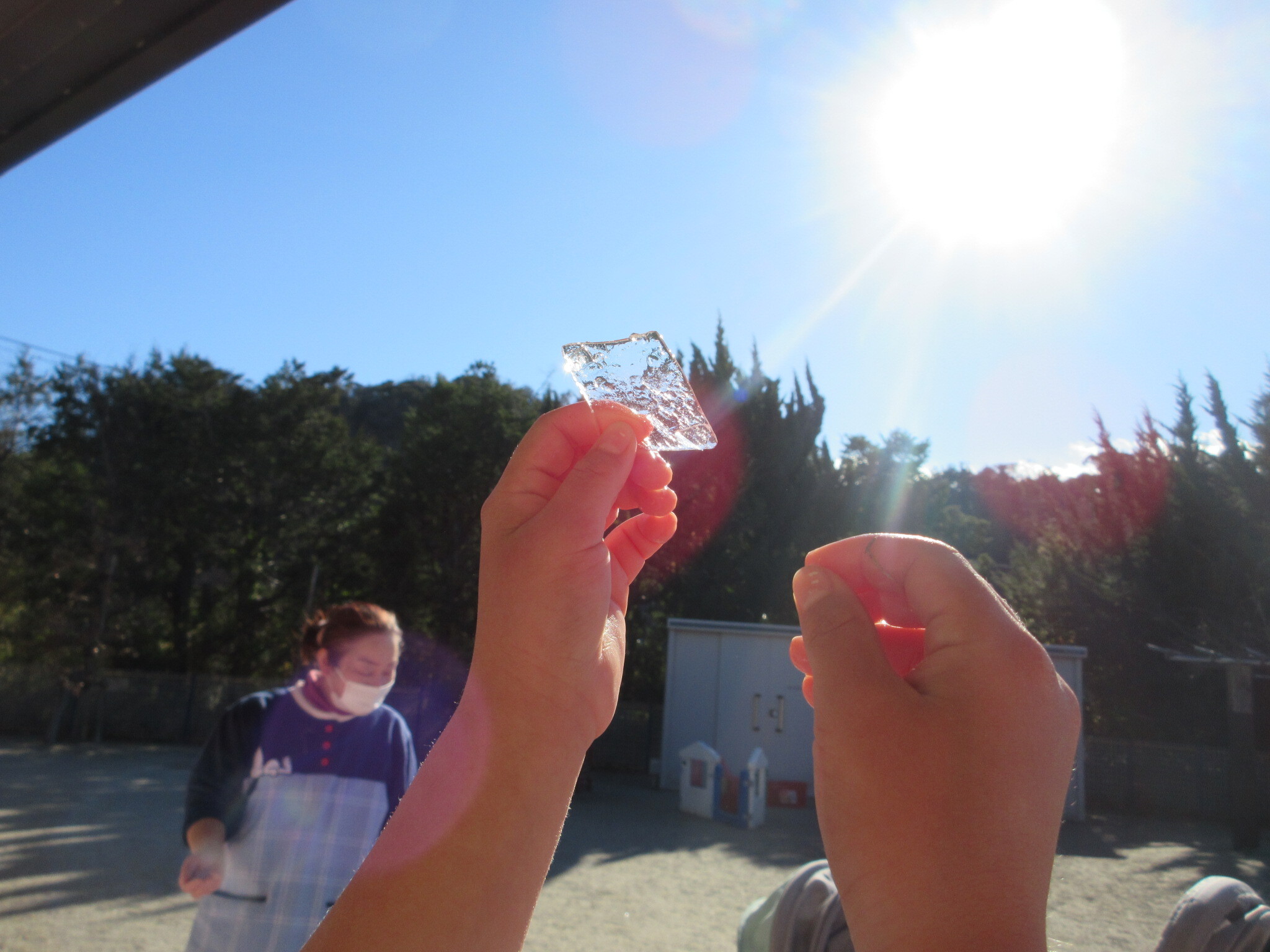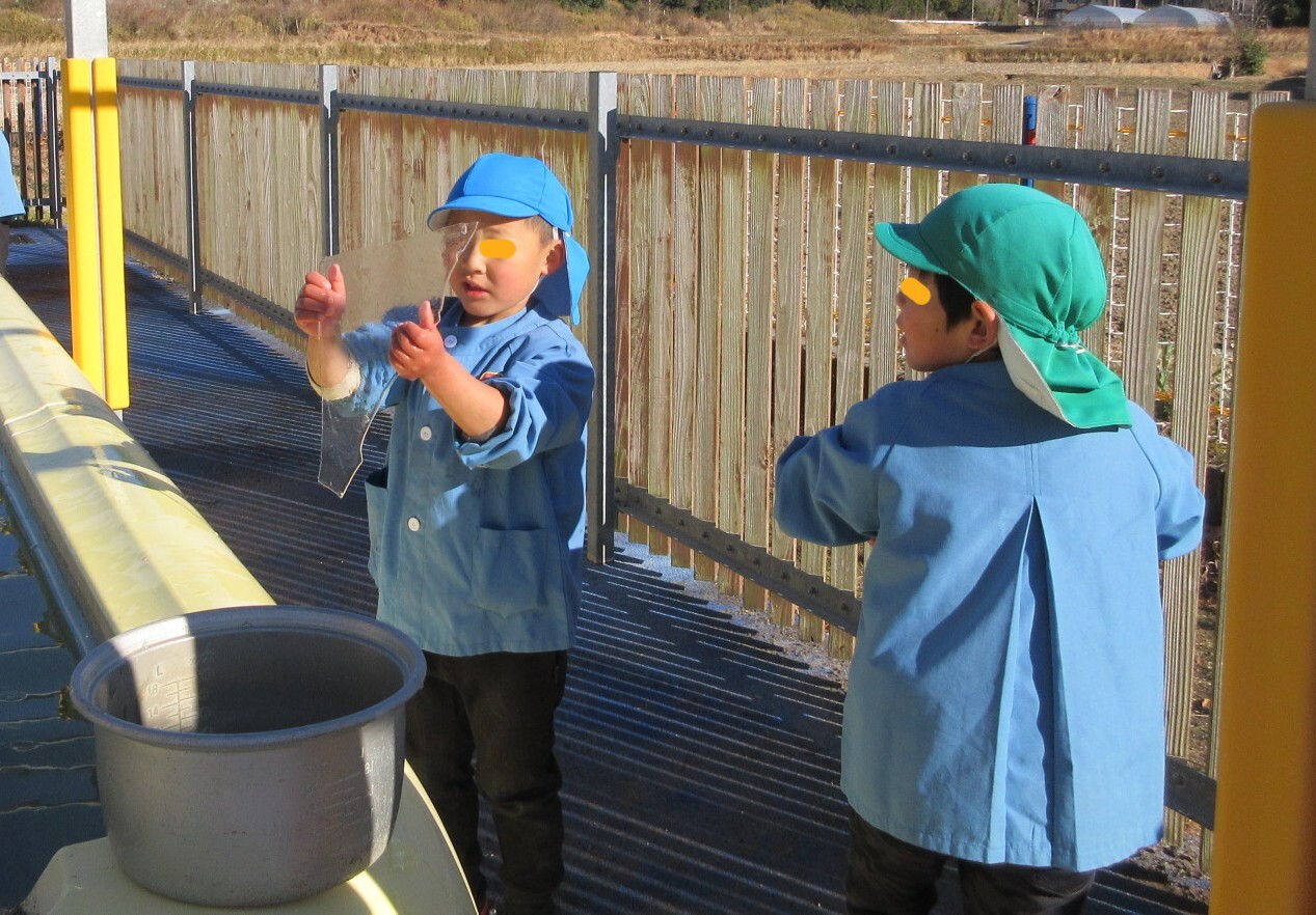 きりん組さんに教わって、氷を太陽に向ける子もいました。