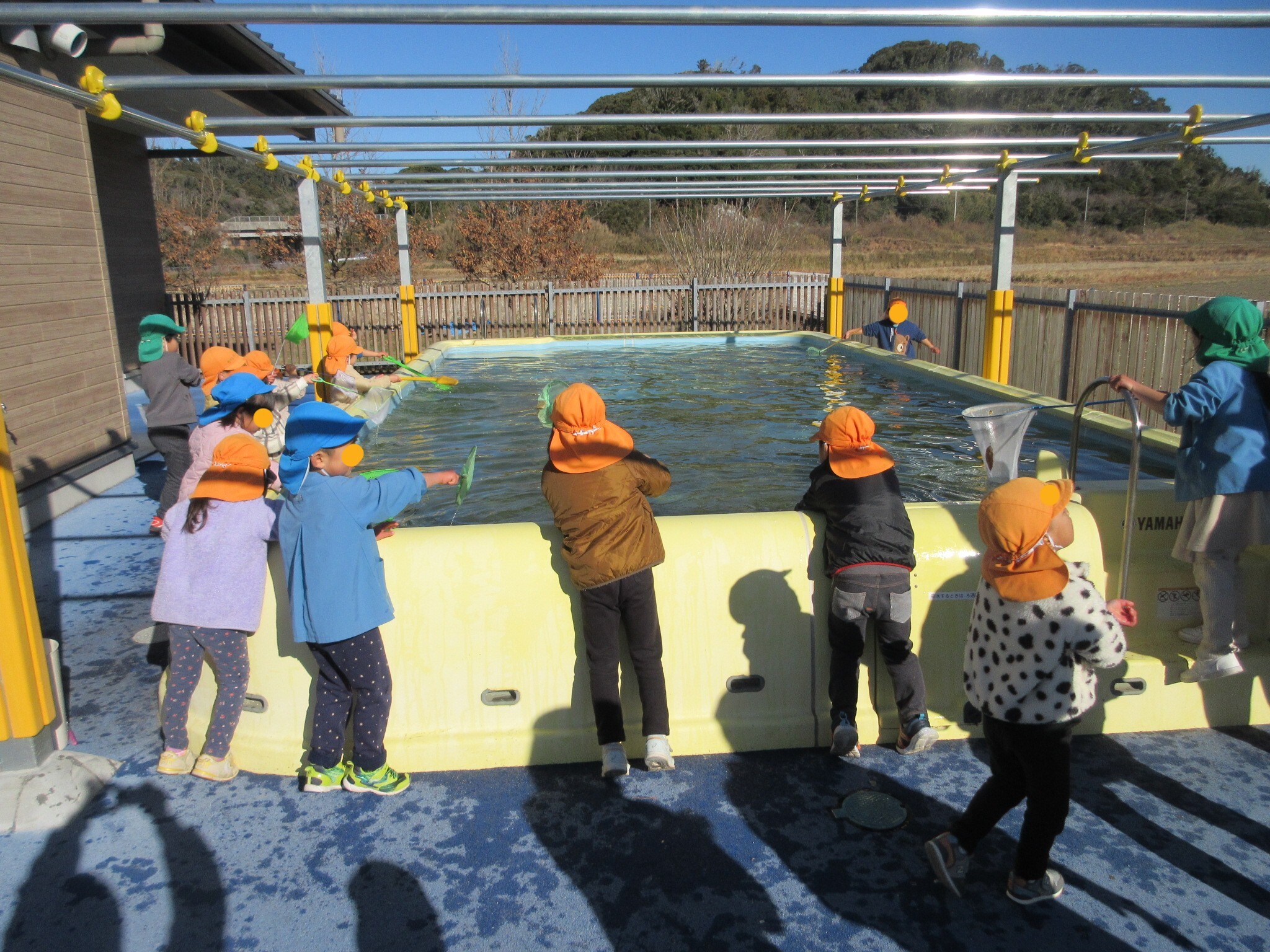 子どもたちが次々にプールに集まってきます。