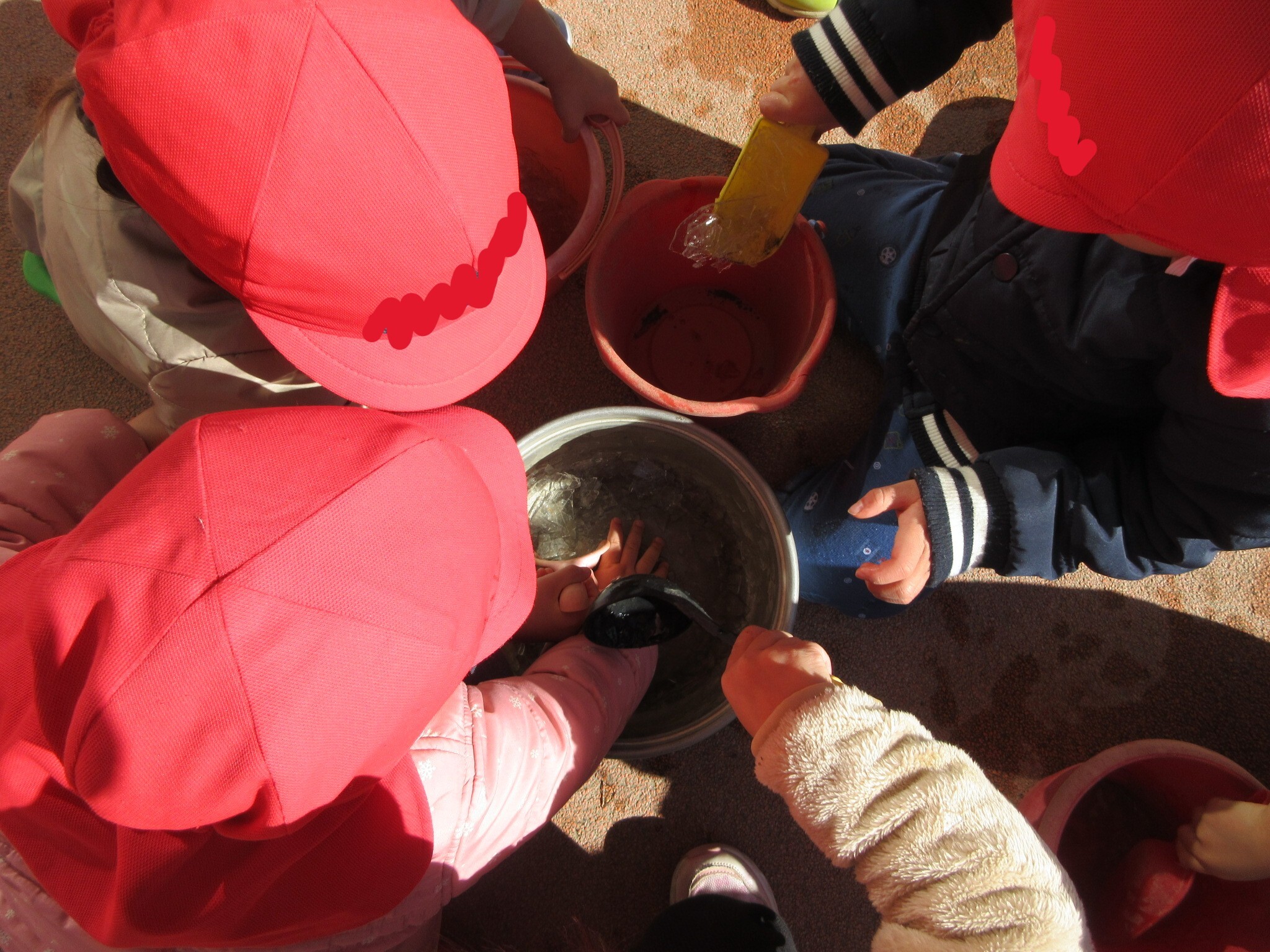 ぱんだ組さんも一緒に氷取りを楽しんでいます。