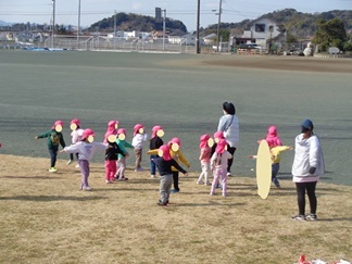 散歩の後は、中学校のグラウンドへ。思いっきり走って遊びました。お腹がペコペコに・・・。