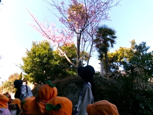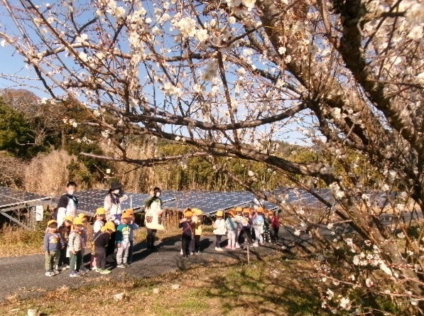 園の梅の花が咲き、子ども達を