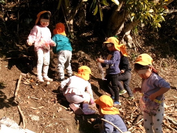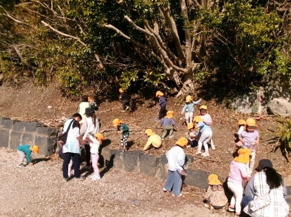 園舎裏へ遊びに出かけた3歳さん。
