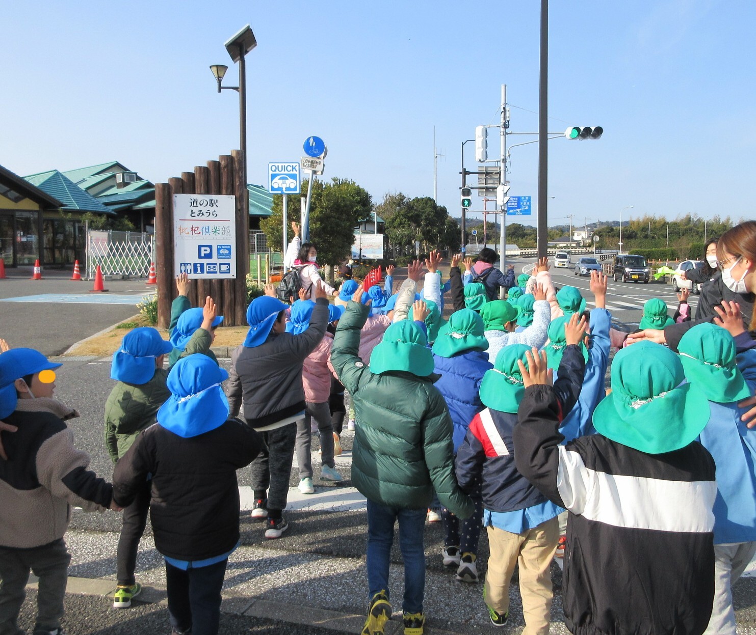 幼稚園のお友達が、いちご狩りに出発です。