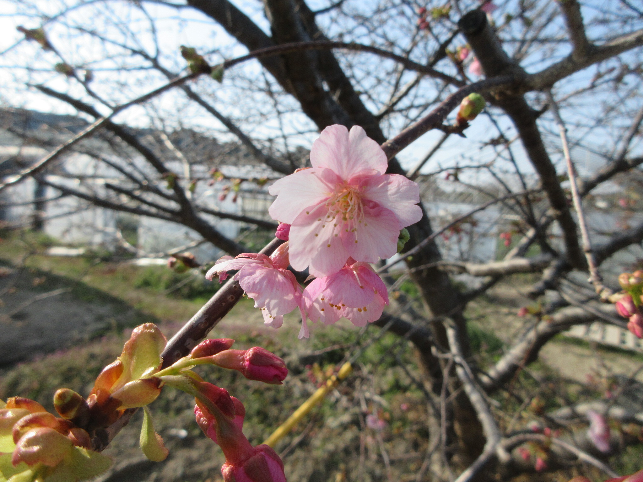 早咲きの桜や水仙の花が出迎えてくれます。