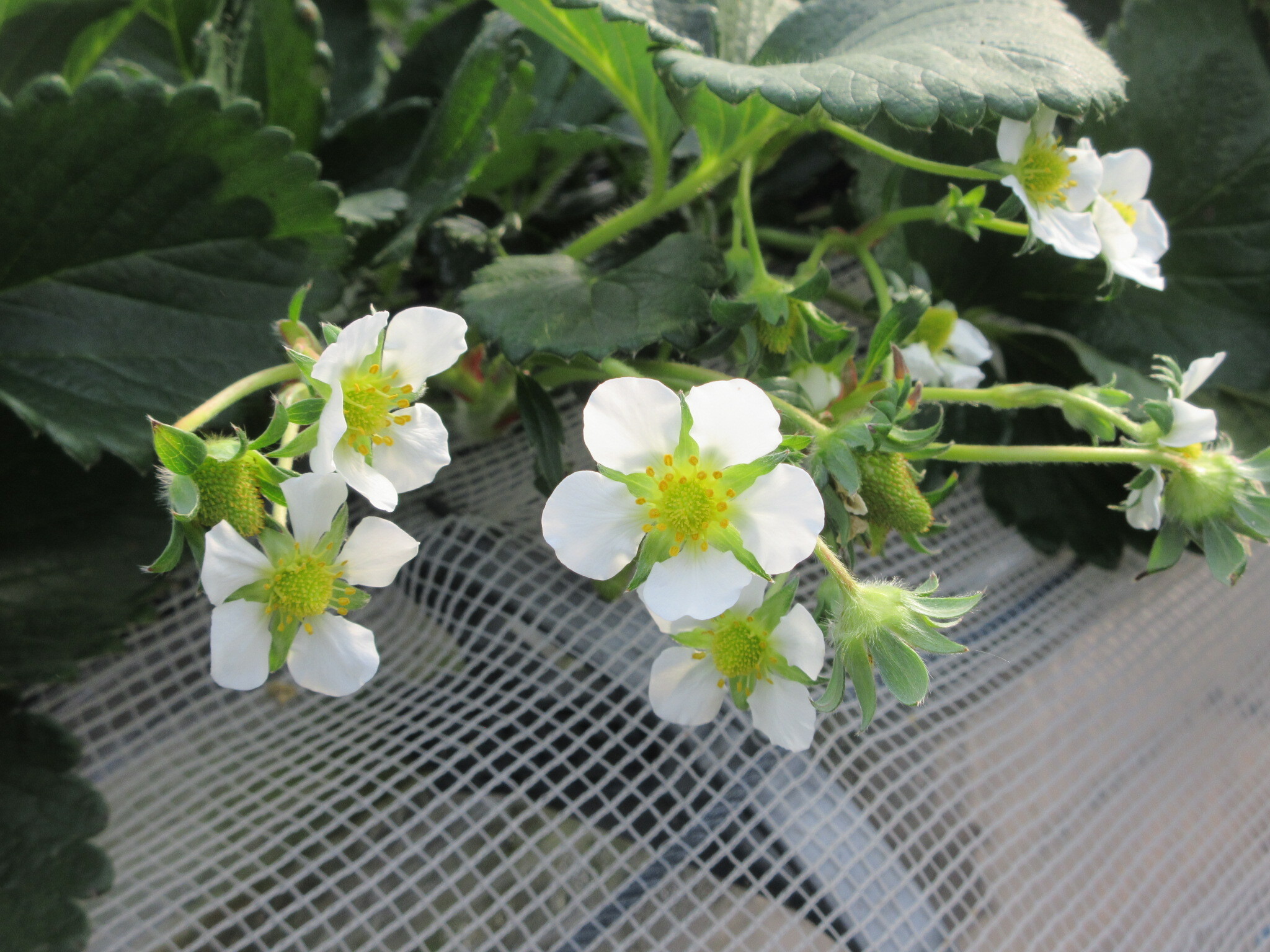 たくさんのいちごといちごの花で、