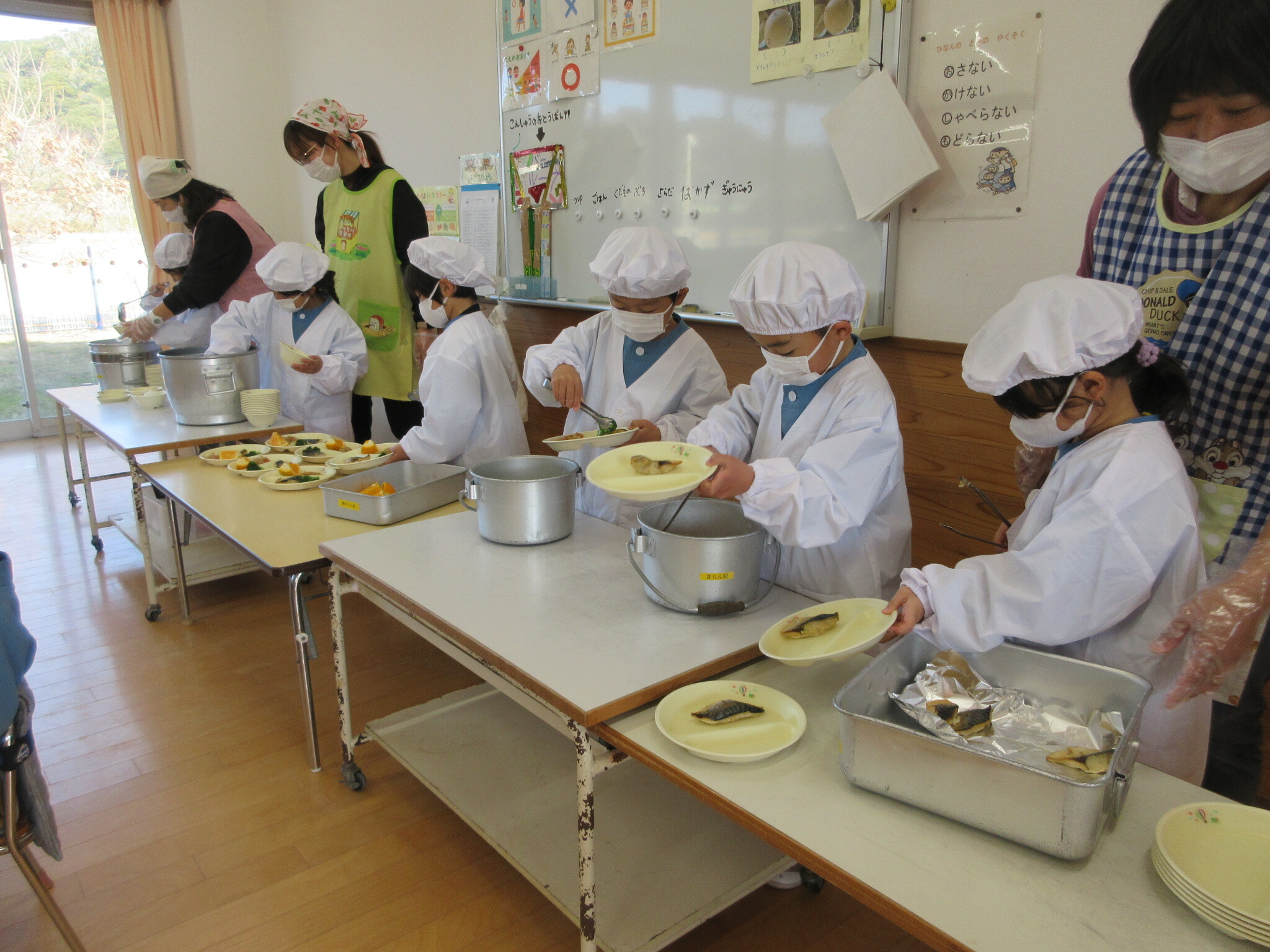 上手に、丁寧に、配膳をしています。