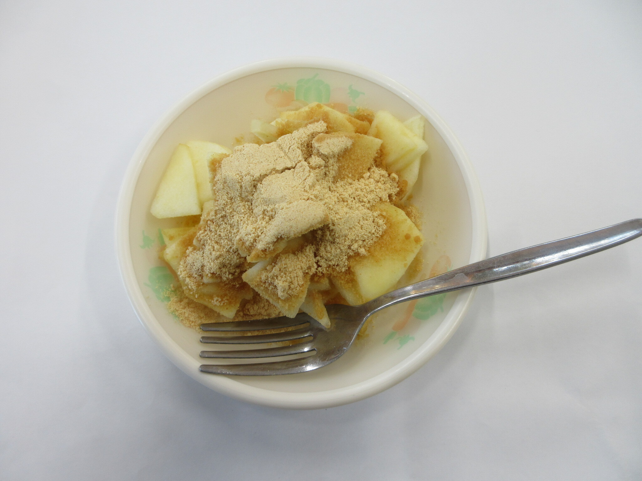3時のおやつは、きな粉りんごです。