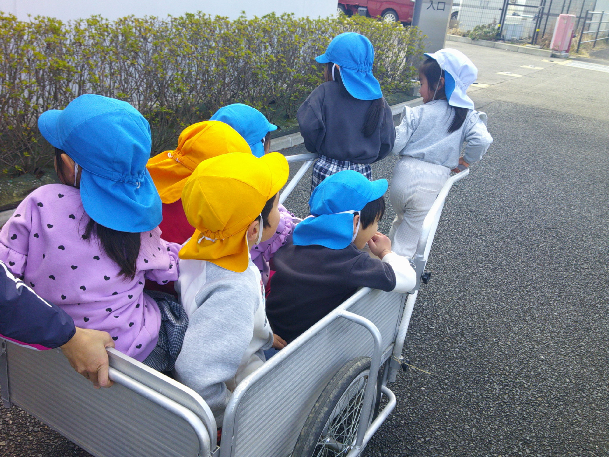 リヤカーで バスごっこ。
