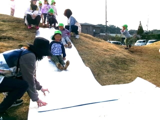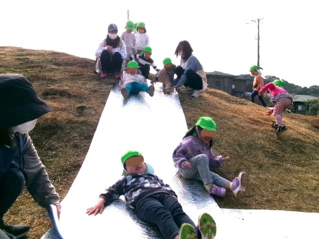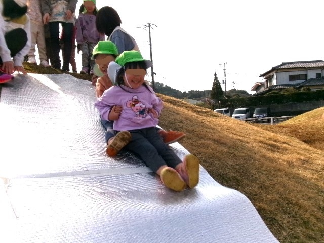 築山の上からの滑り台にも挑戦。