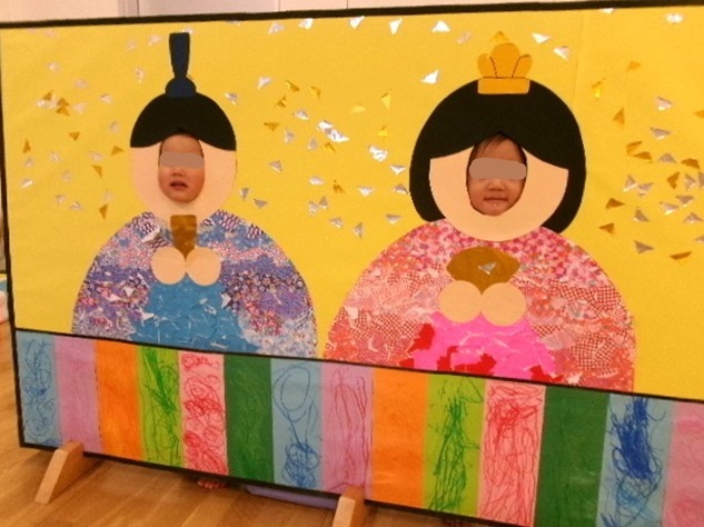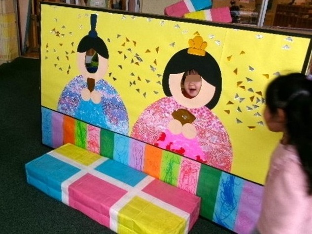 色を塗ったりして、みんなでお雛様を