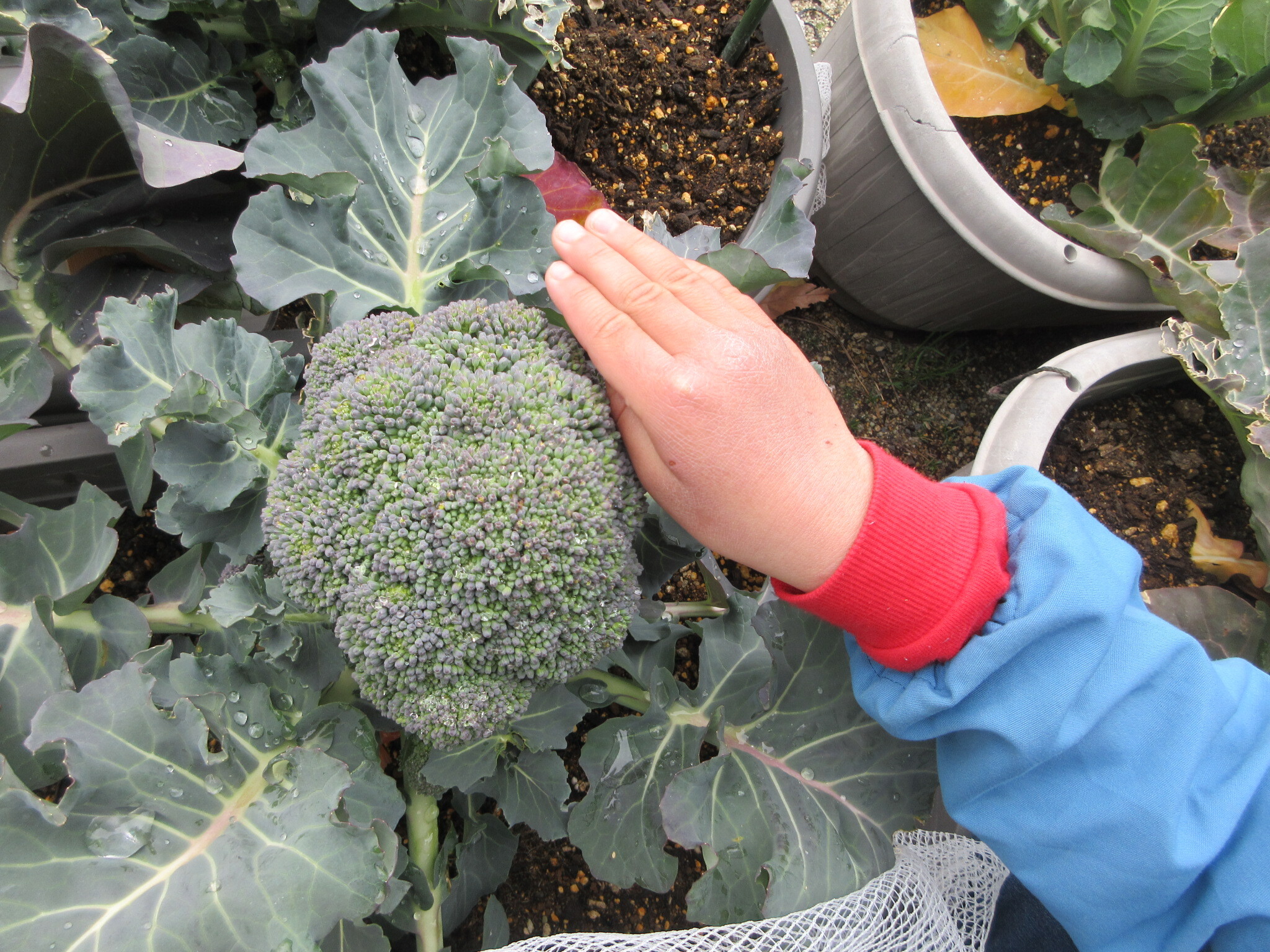大きく育ったブロッコリーを見て、収穫を楽しみにしています。