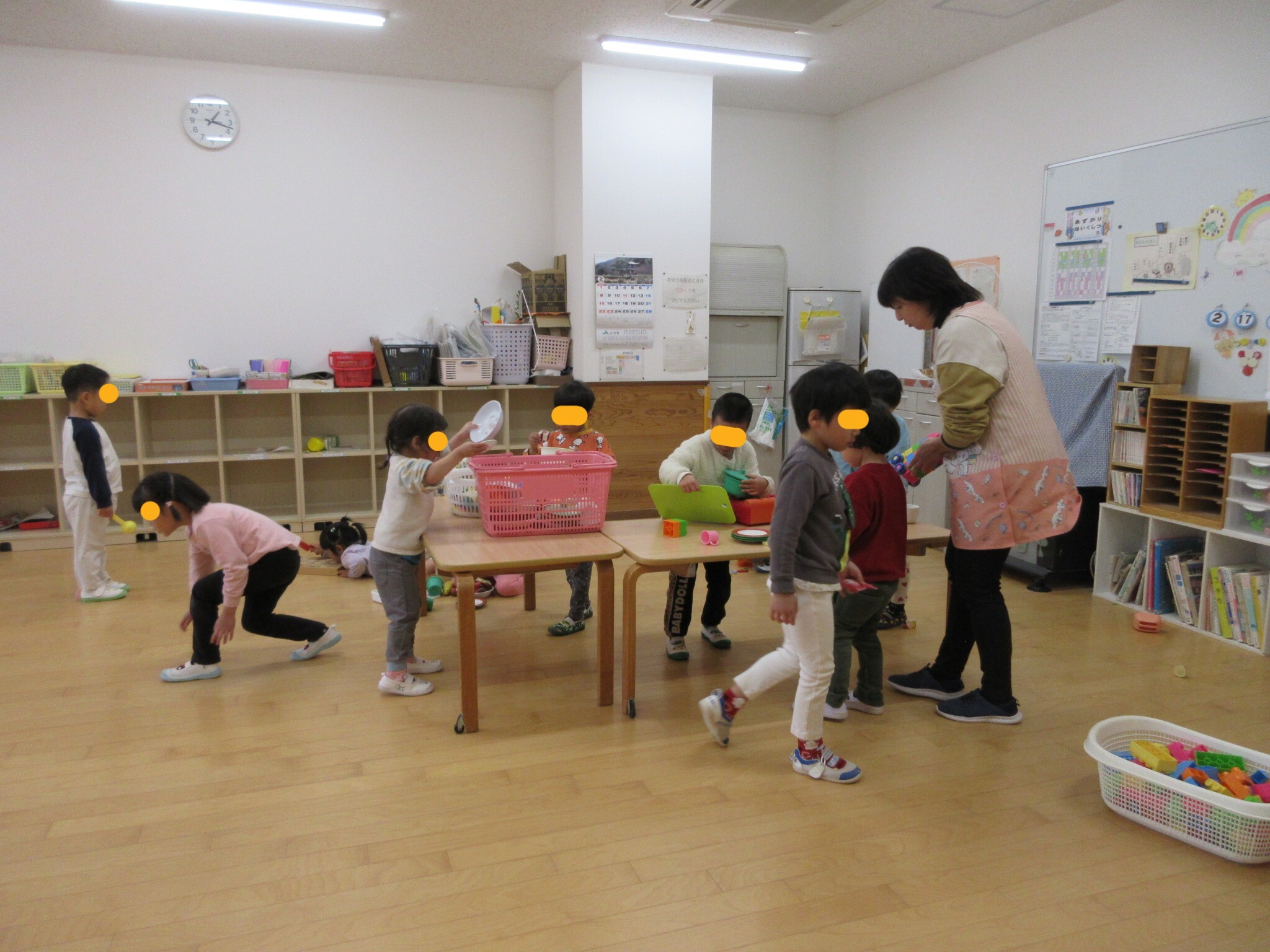預かり保育室で遊ぶ時間も徐々につくっていきます。
