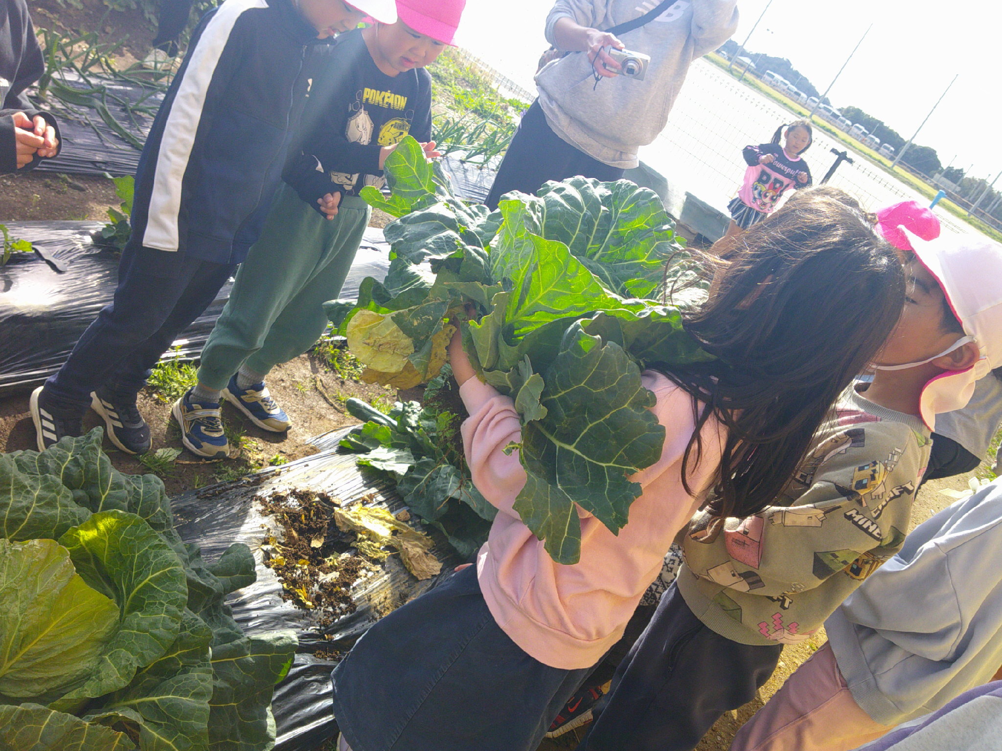 今日は 年長さんがキャベツを収穫して