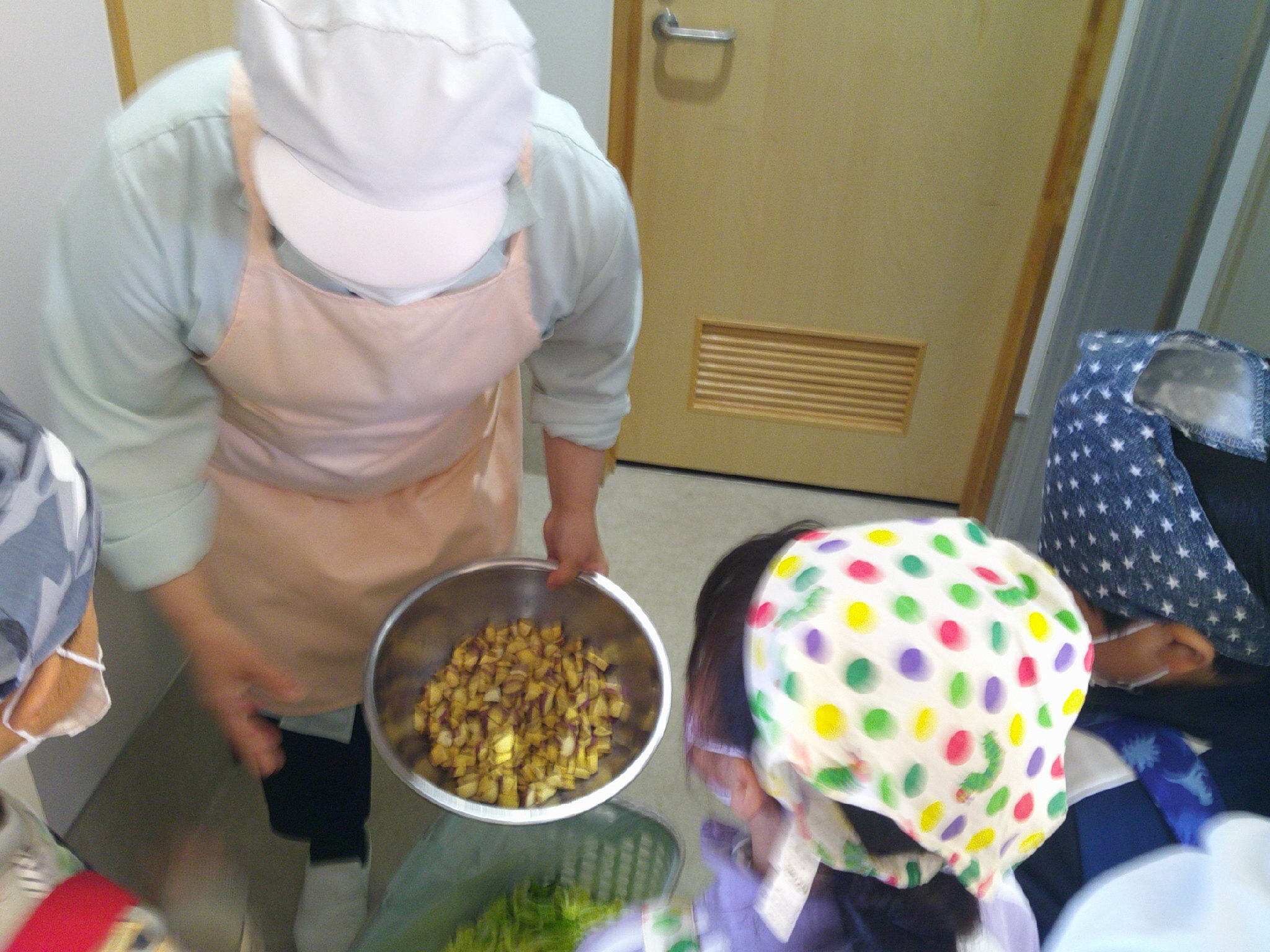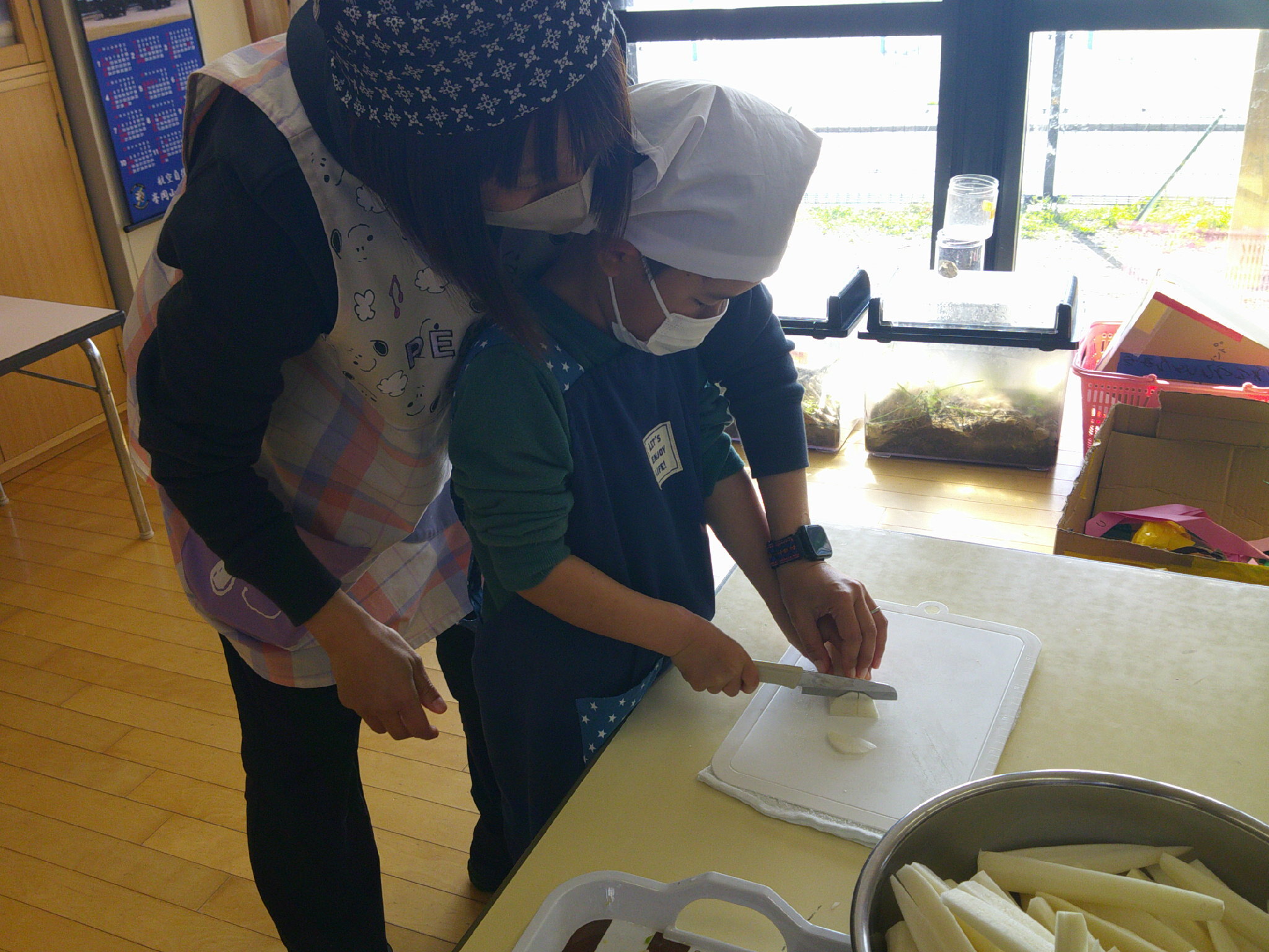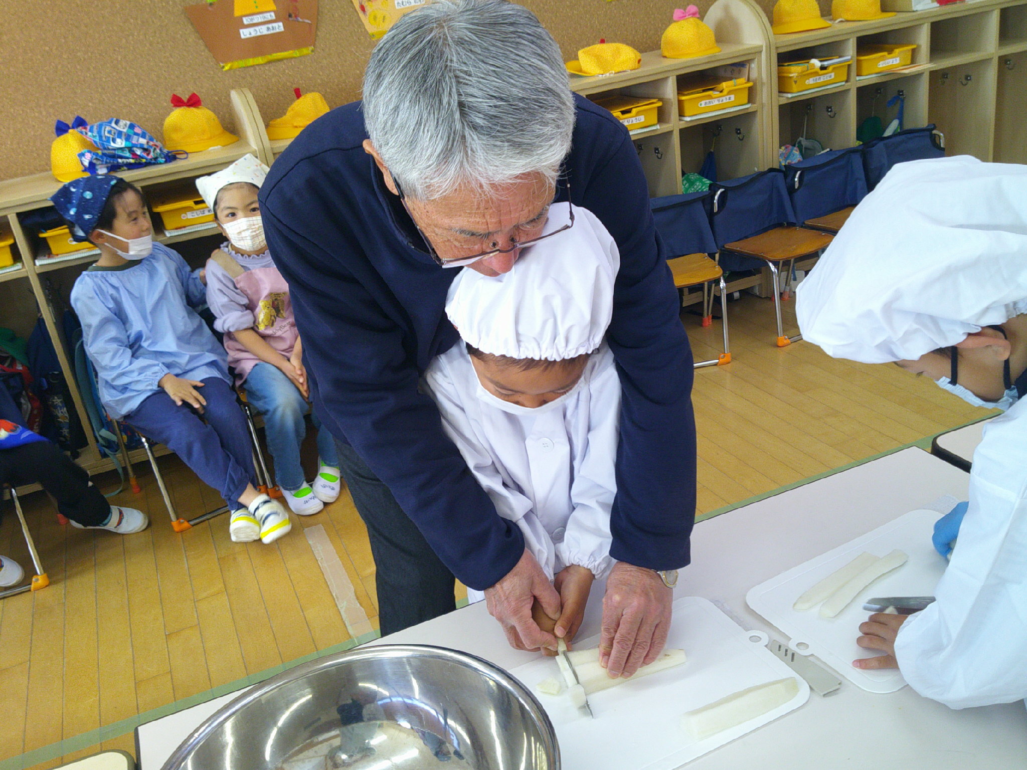 子どもたちは 調理の様子が気になって