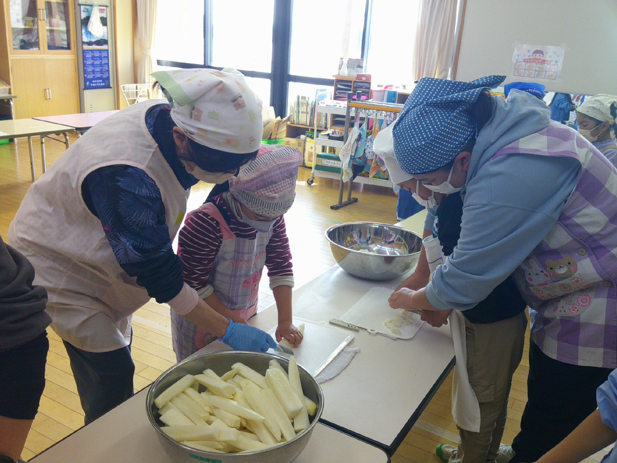 たくさん切って 調理室に届けます。