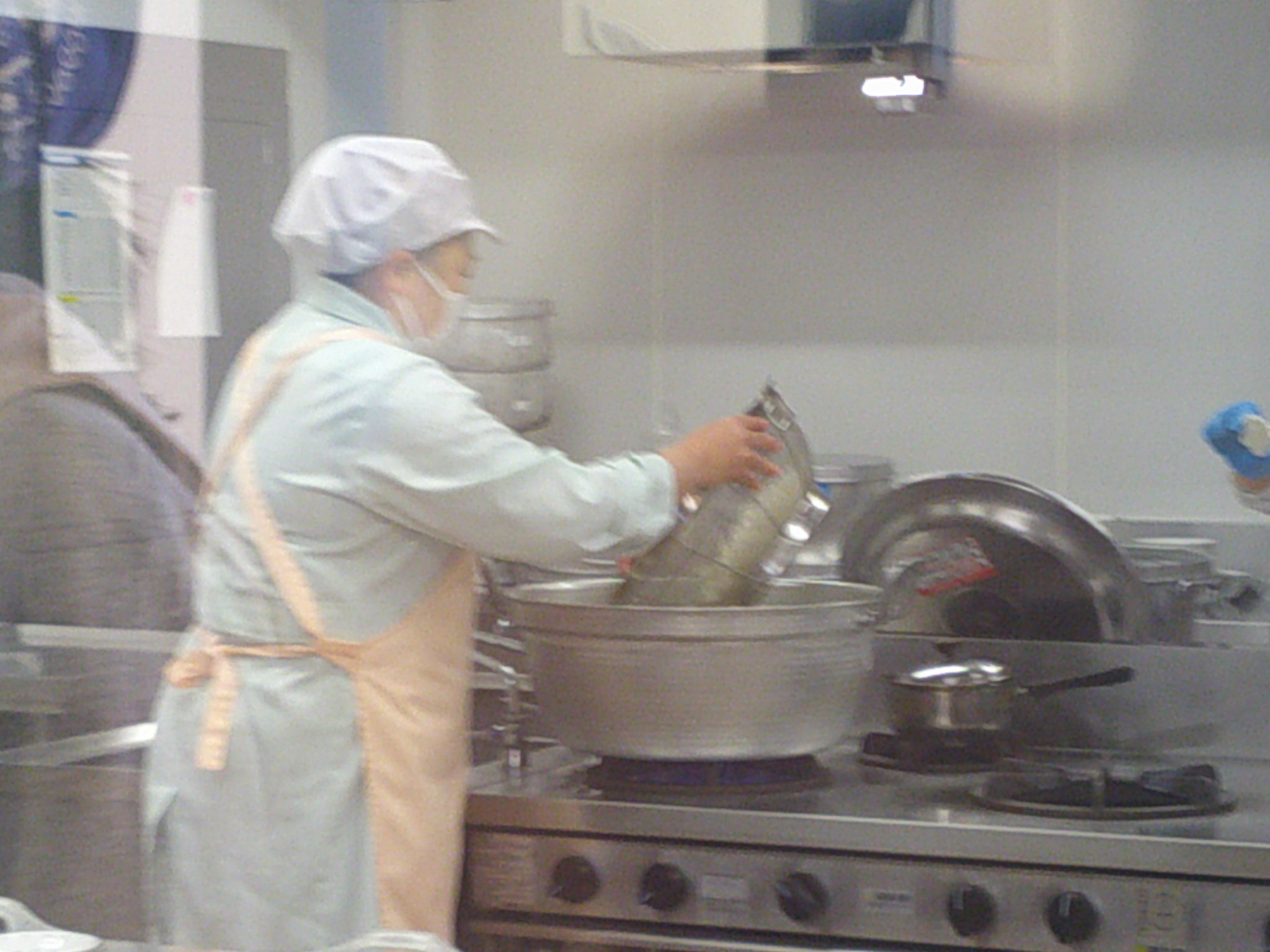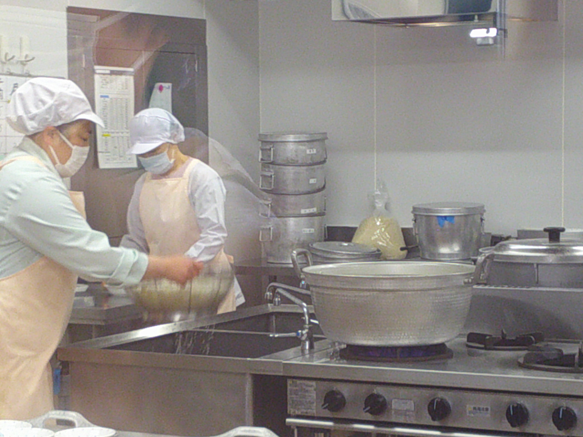 調理室のガラス窓にくぎ付けです。