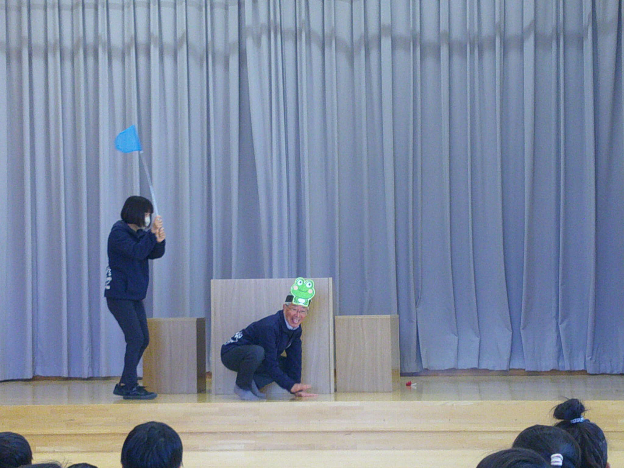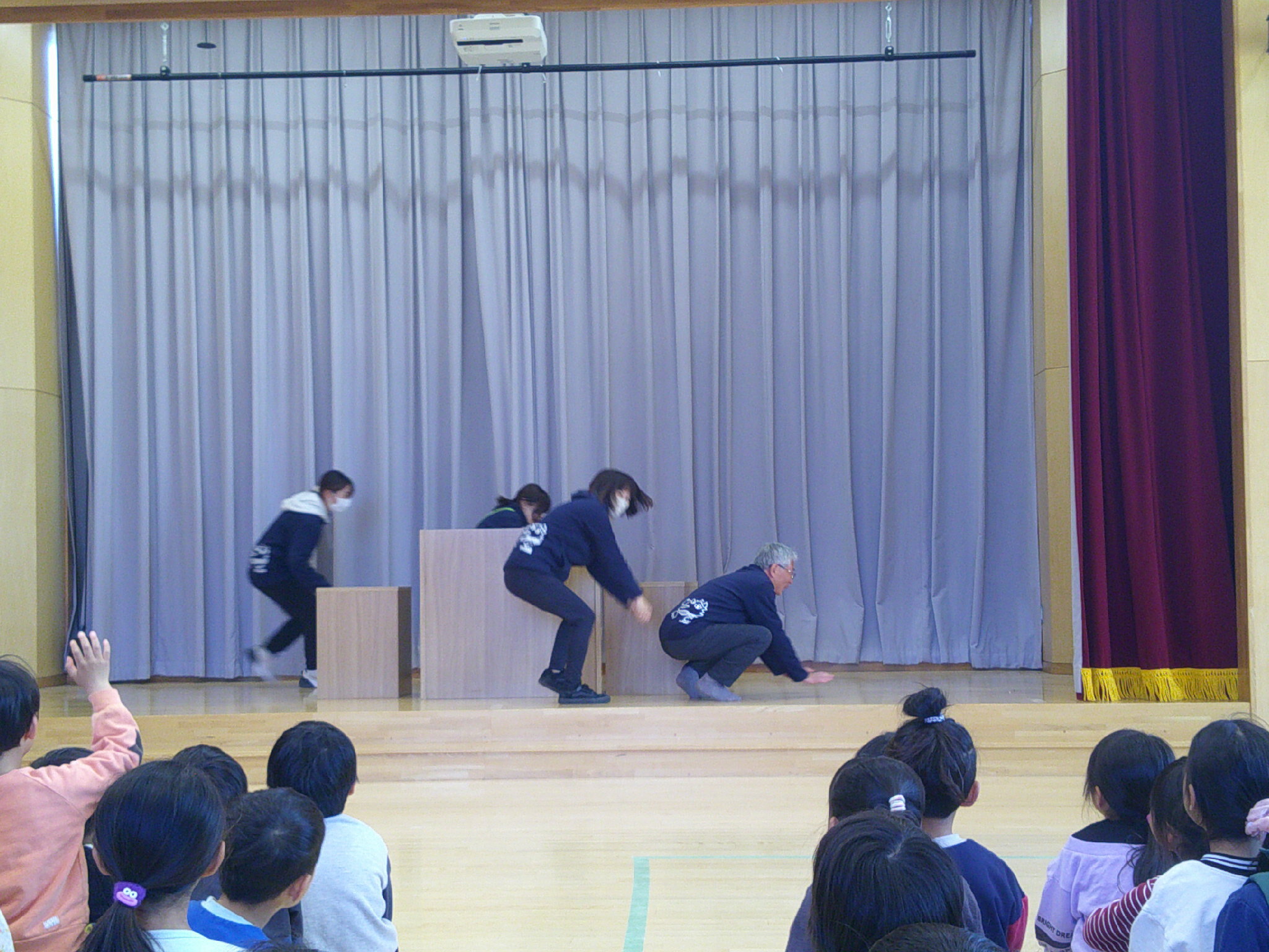 ステージの先生たちのジェスチャーを見て