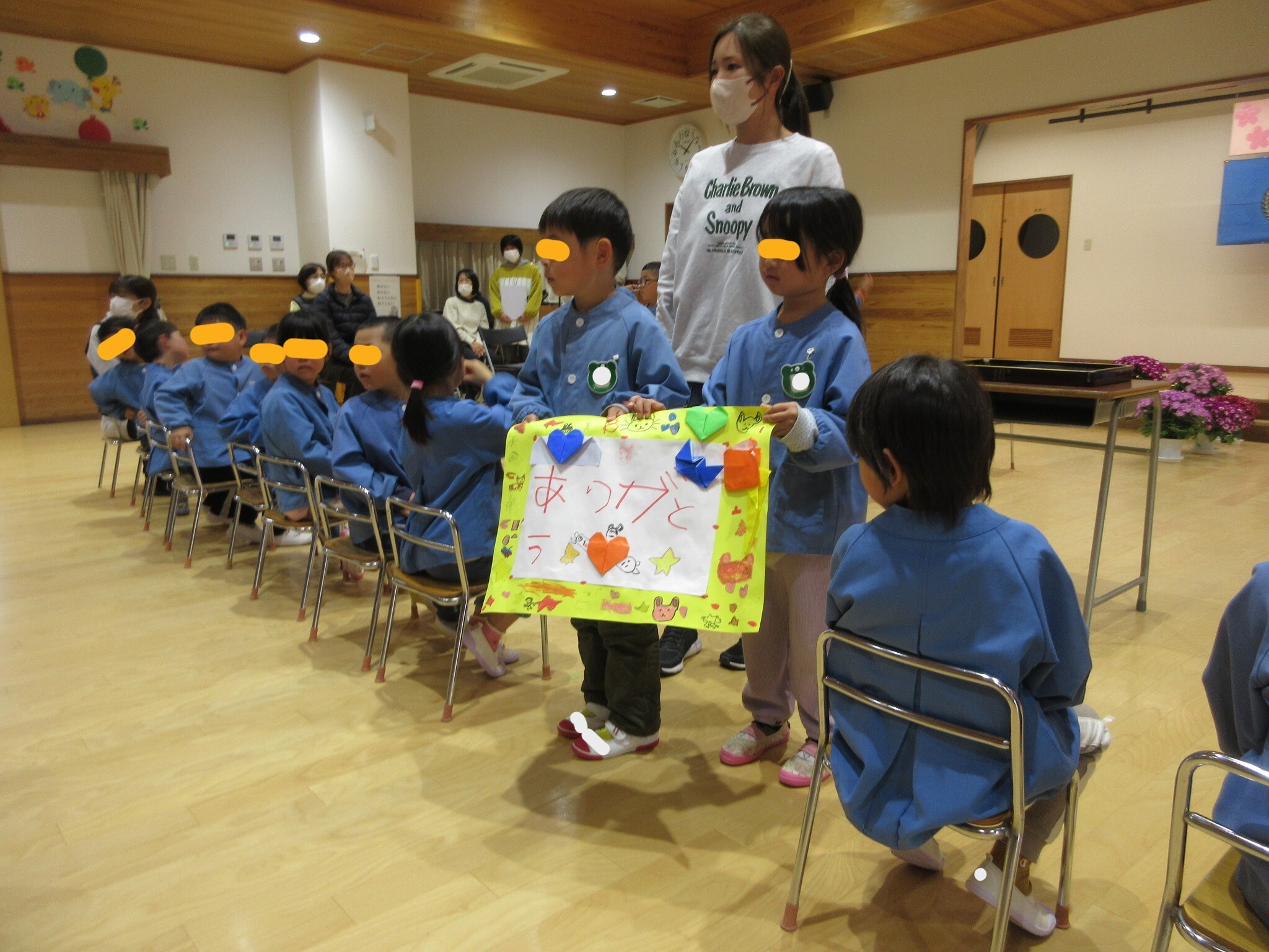 きりん組さんの卒園を祝い、会いに来てくれました。