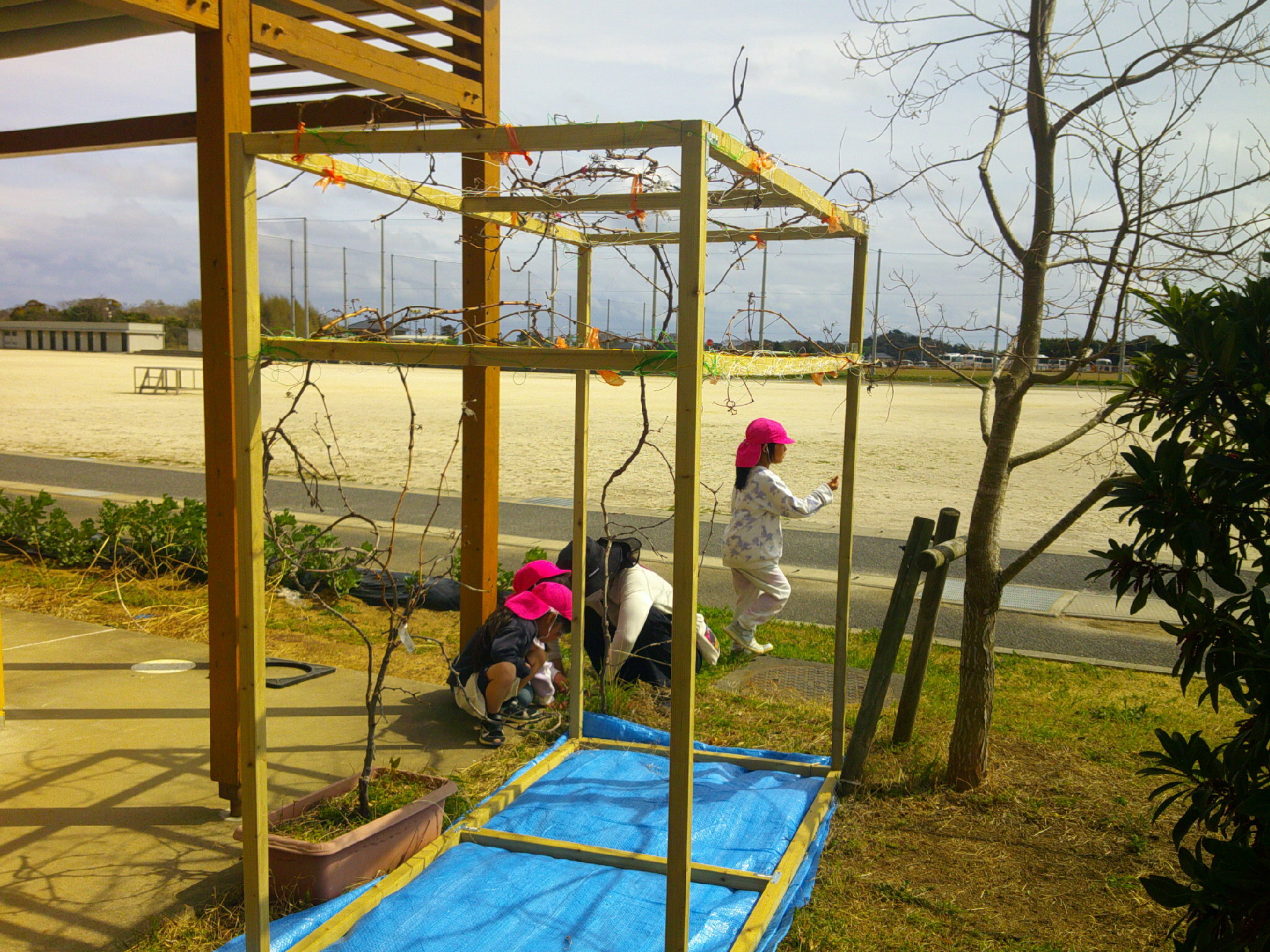 最近作った 巨峰の棚の近くで