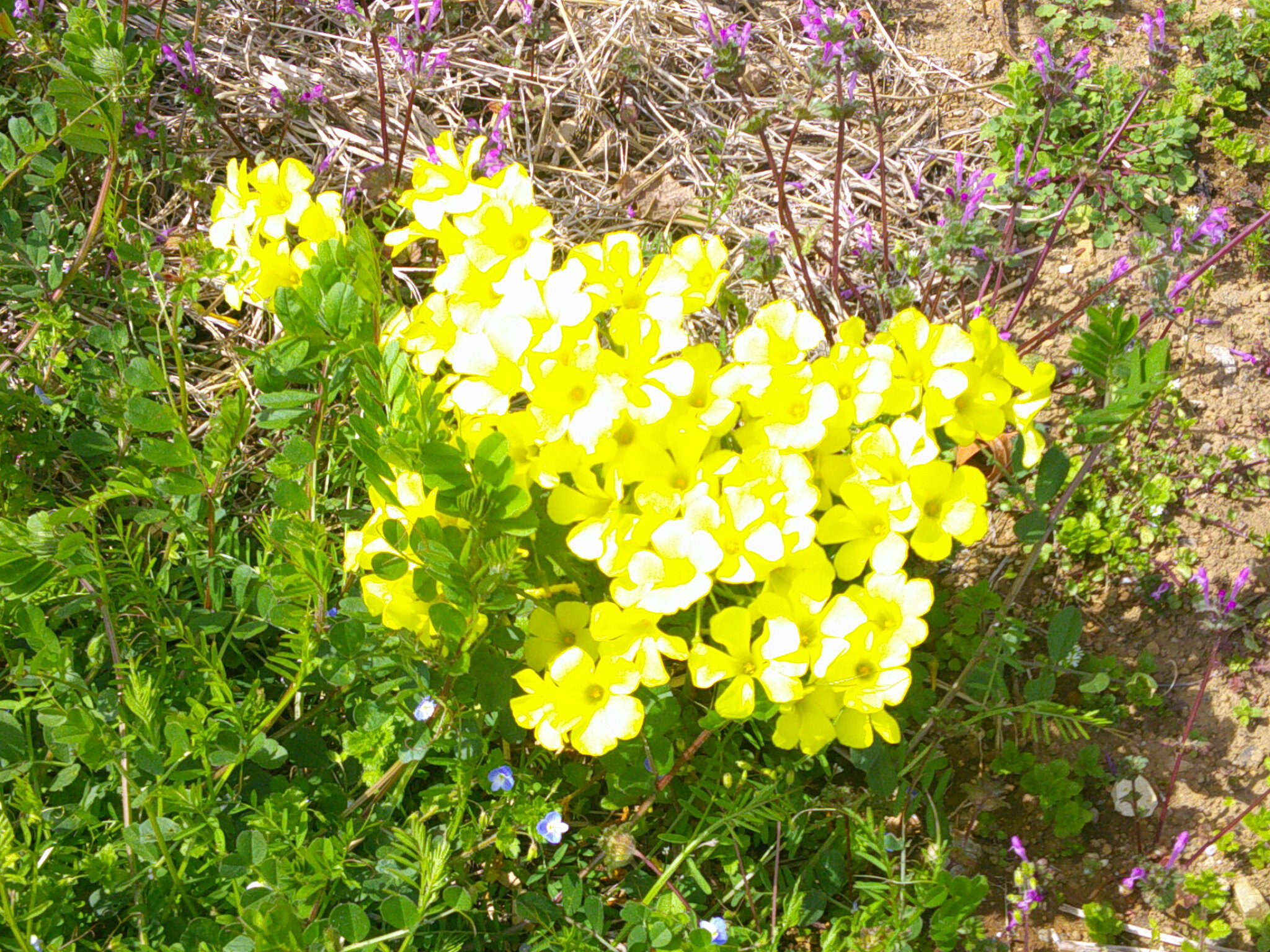 大きなカタバミの黄色い花が咲いています。