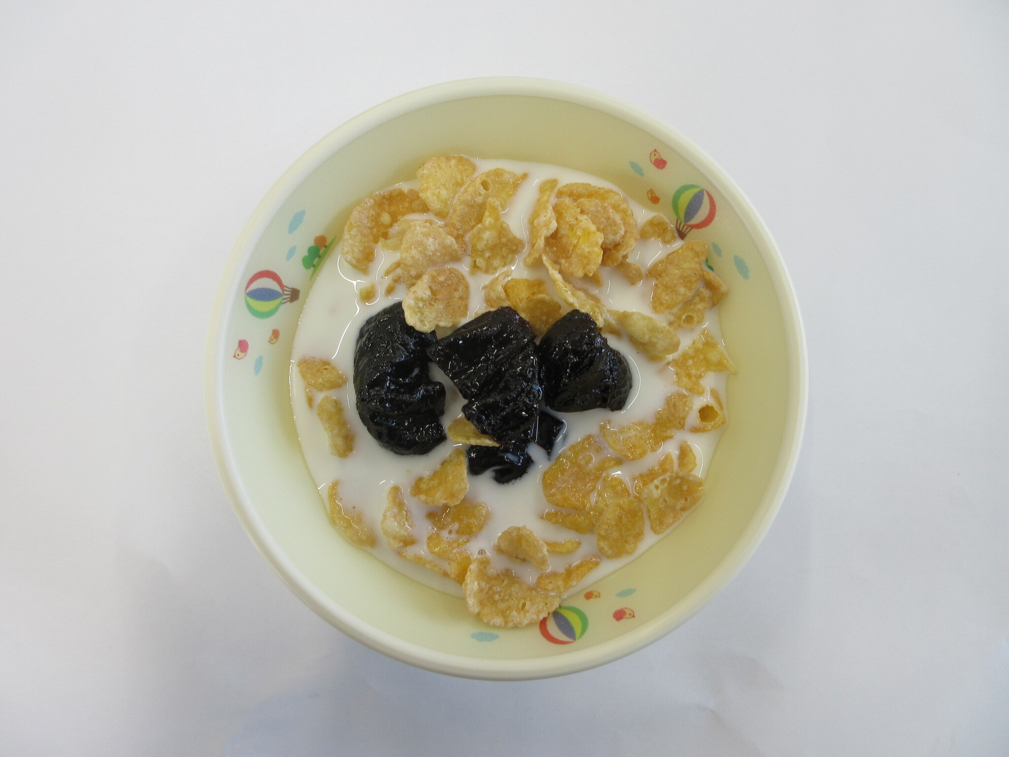 3時のおやつは、コーンフレーク(種なしプルーン)でした。