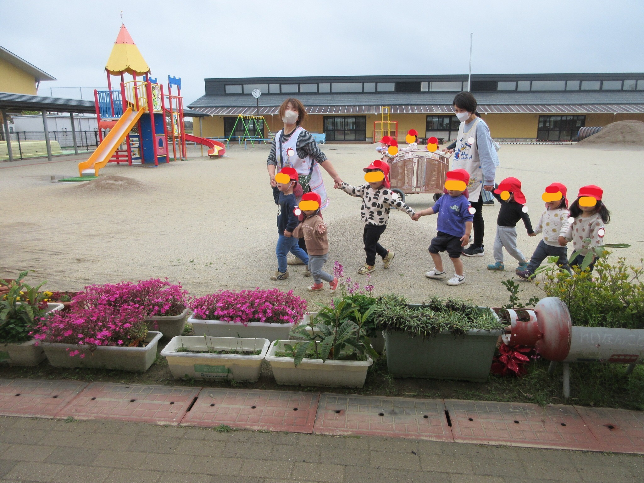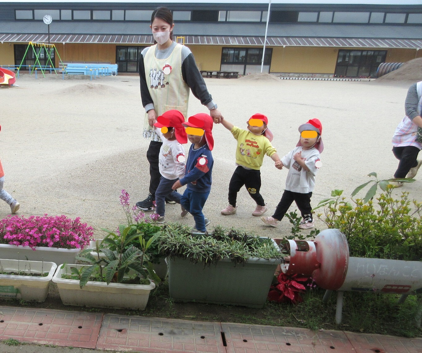 保育所のお友達が学園内のお散歩に出かけました。