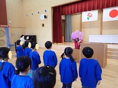 幼稚園の1学期始業式がありました。「年長組になったんだ」という気持ちが子どもたちの表情から見ることができました。お話の聞き方も歌もとても素敵でした。