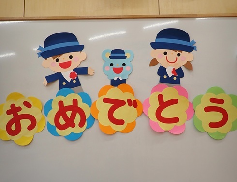 幼稚園の入園式がありました。「はい」というお返事も元気よく、とても素敵でした。学園の先生が入園のお祝いに看板を作ってくれました。