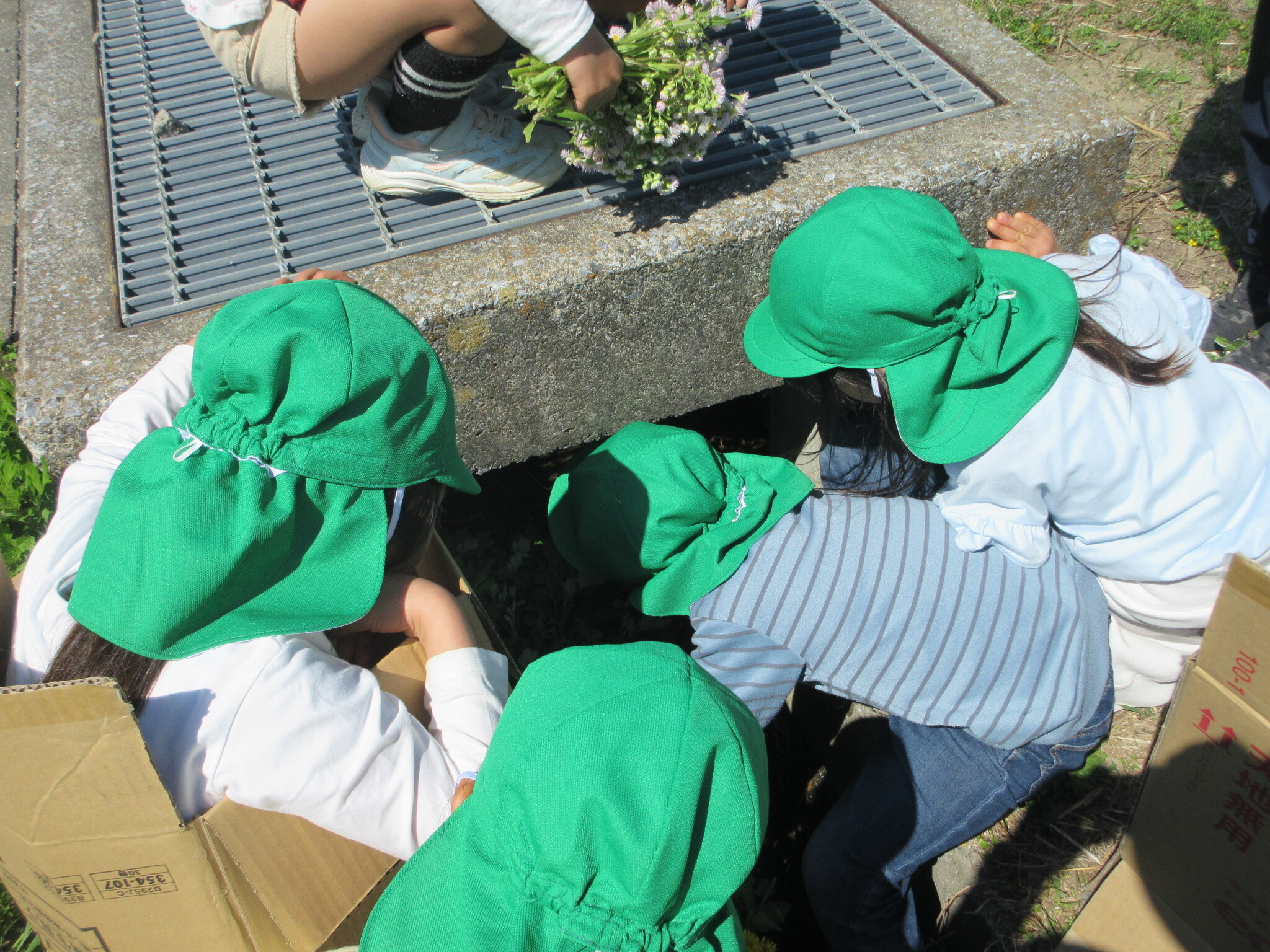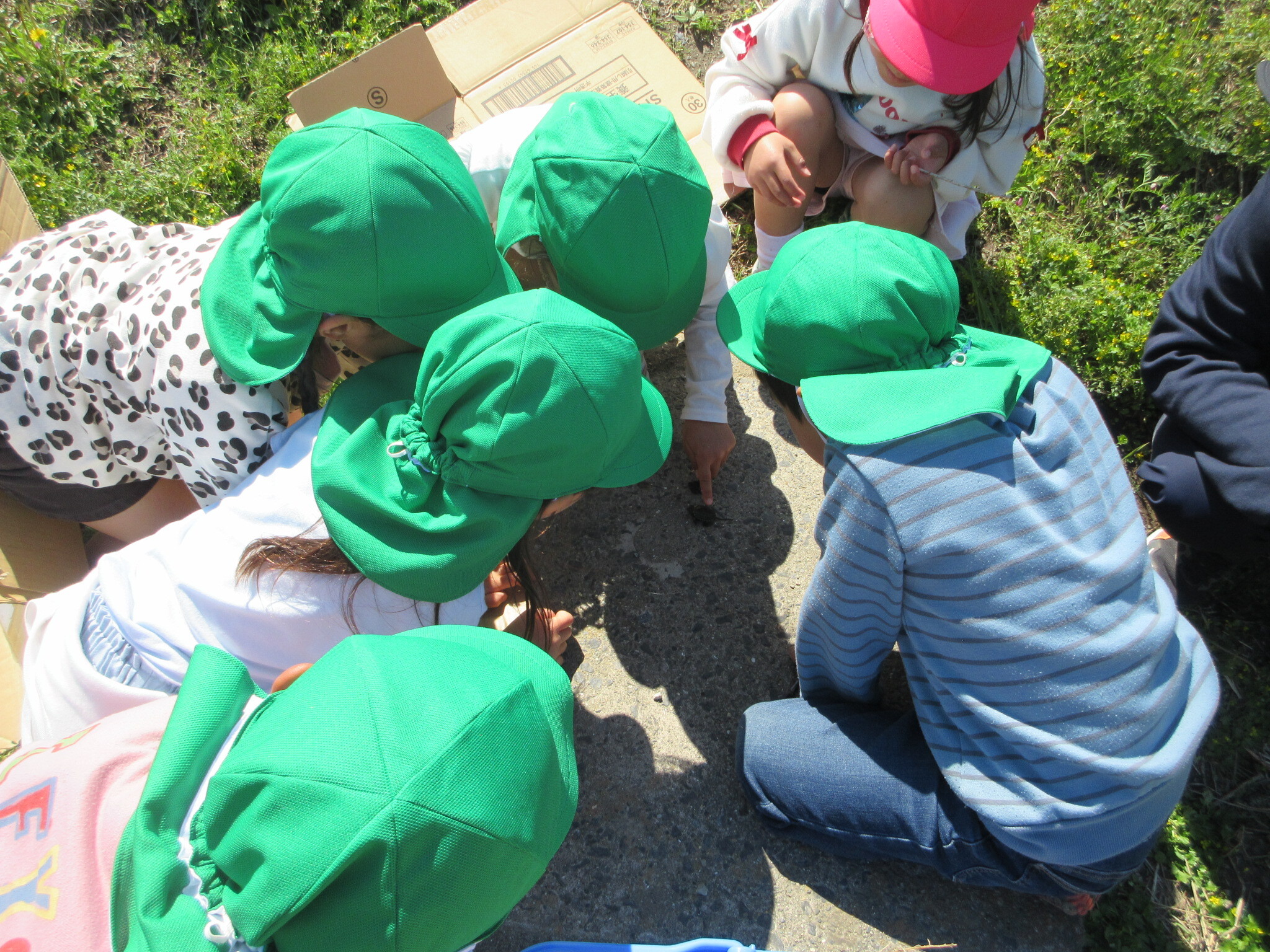 捕まえることができて、達成感を味わう子どもたちでした。