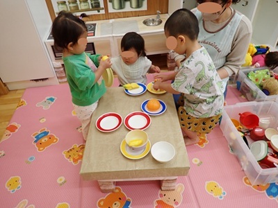 朝から雨の一日でした。室内で、ままごとやブロック、ダンス、ゲームなどをして遊びました。