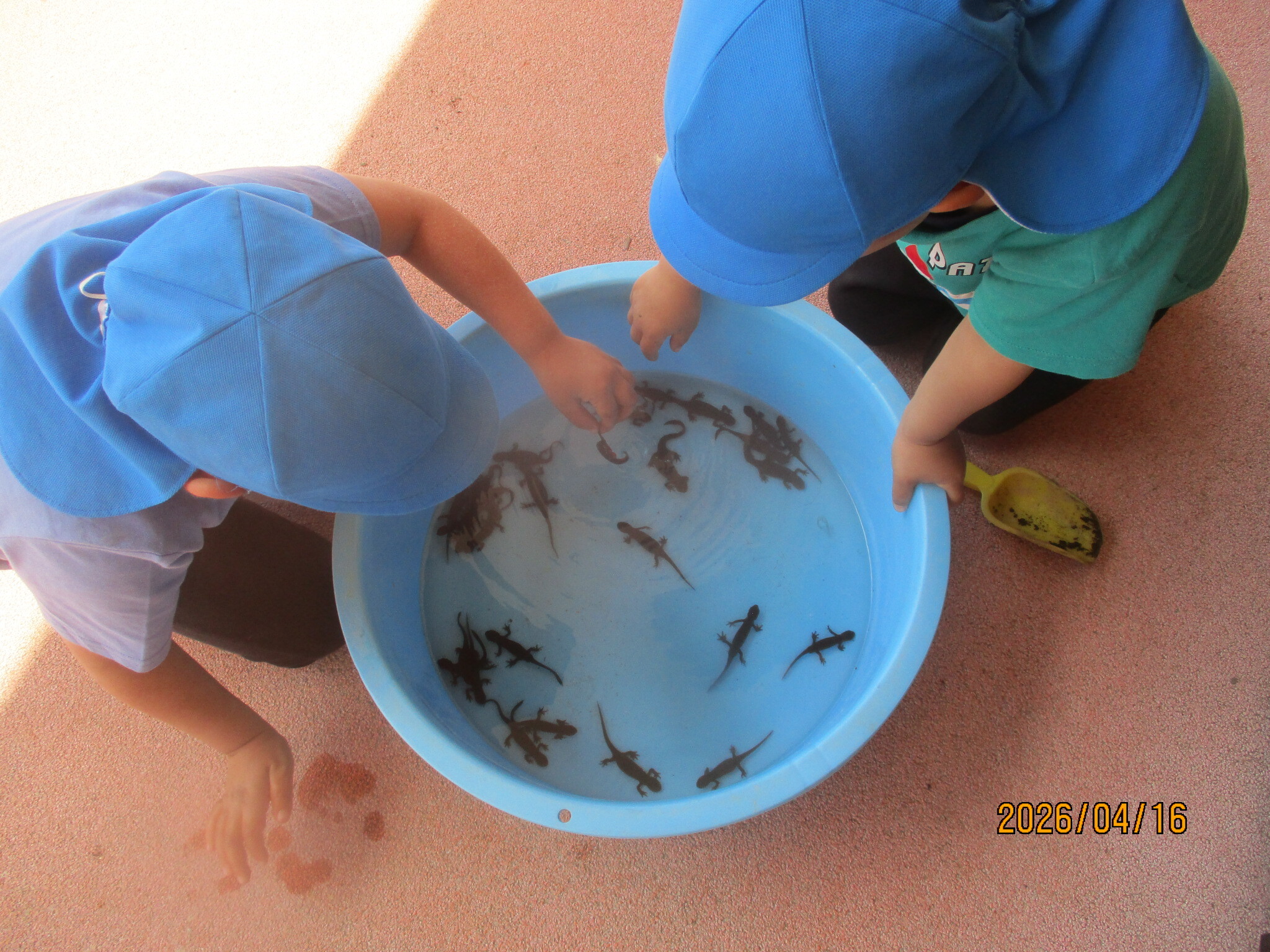 「工事中です!。」「水は砂が嫌いだから、いっぱい運ぶぞ。」
