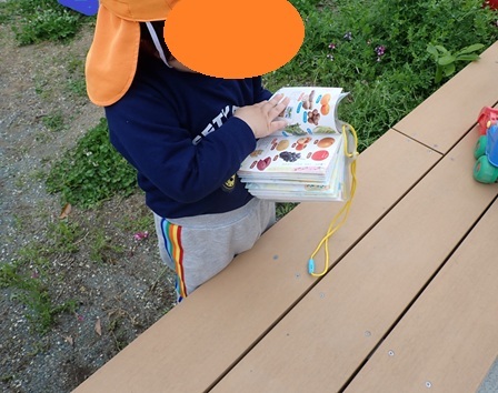 図鑑で「何だろう」と調べ物をしているお友達もいます。