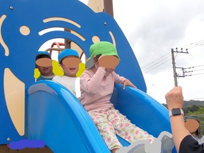 滑り台からは、「ジャンケン・ポン」という声が聞こえます。ジャンケンに勝つと滑ることができるんだとか。